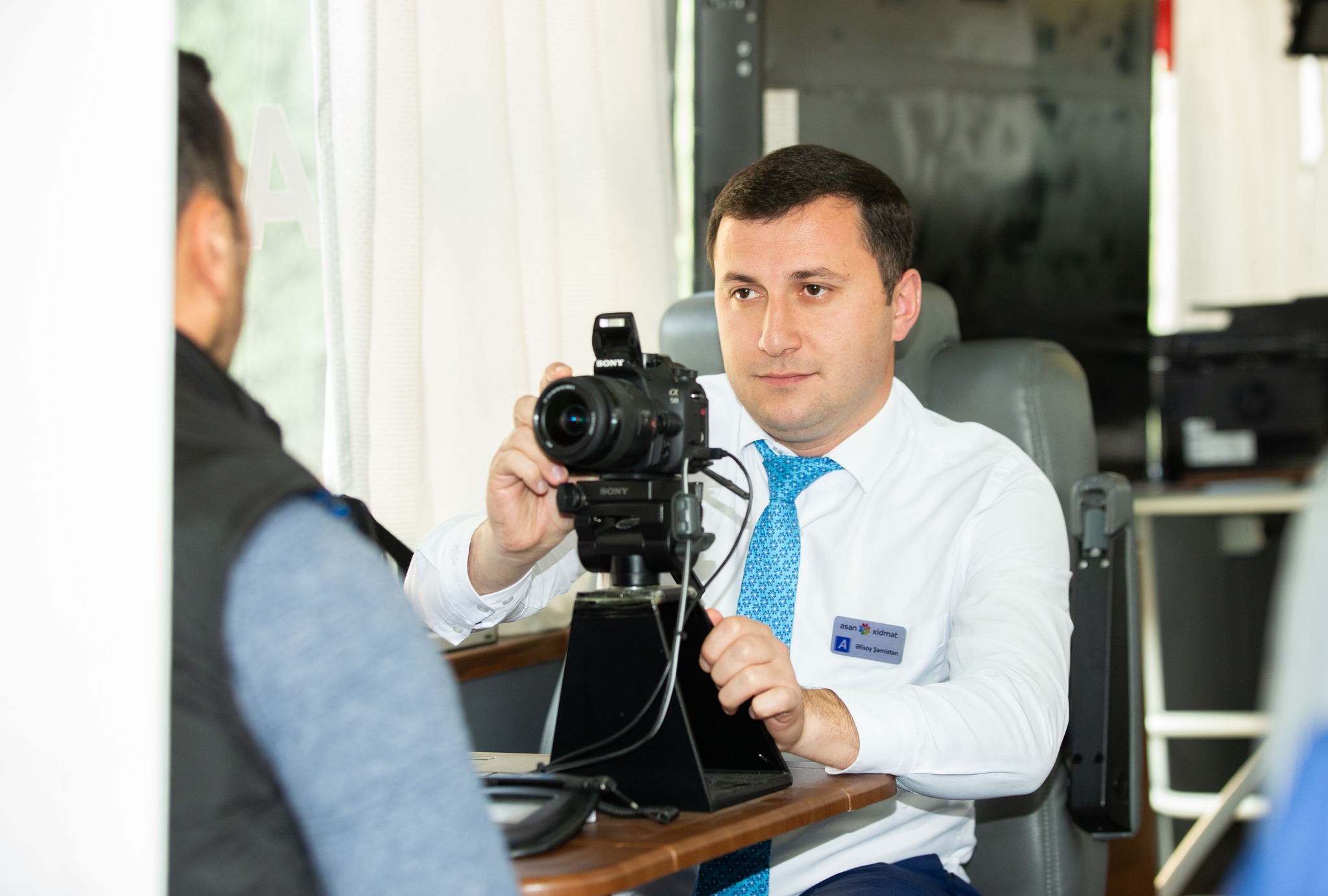 Səyyar ASAN xidmət avtobusu Ucar rayonunun Heydər Əliyev prospektində vətəndaşlara xidmət göstərir.