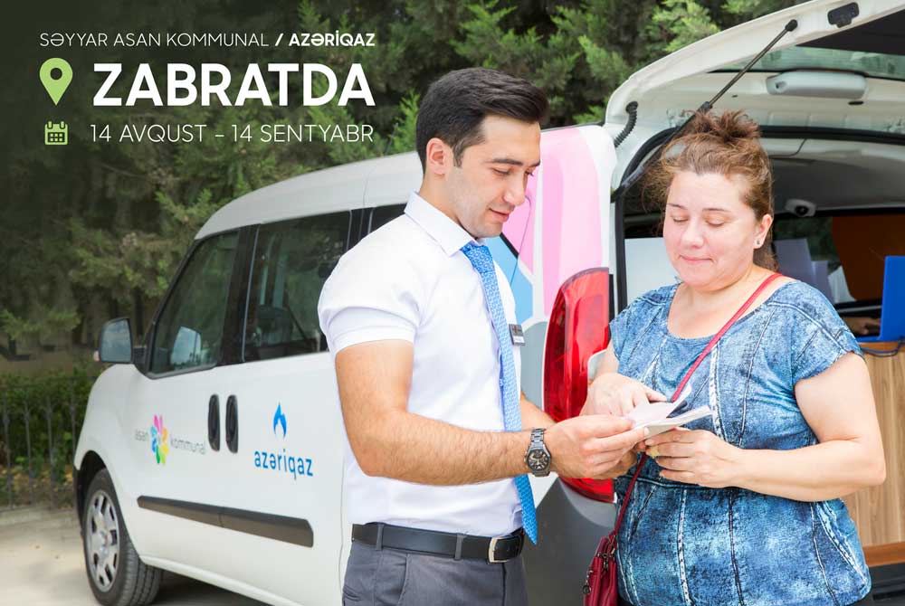 14 avqust – 14 sentyabr 2018-ci il tarixində Səyyar ASAN xidmət çərçivəsində “Azəriqaz” İstehsalat Birliyi tərəfindən Zabrat qəsəbəsində səyyar formada xidmətlər həyata keçiriləcək.