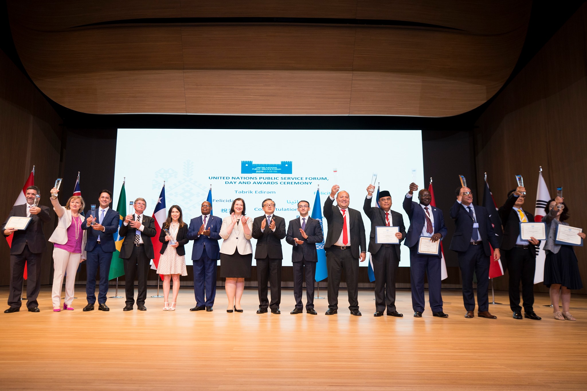 Plenar sessiyanın ardından Birləşmiş Millətlər Təşkilatının Dövlət Xidmətləri üzrə Mükafatlandırma mərasimi keçirilib. Mükafatların təqdimetmə mərasimində BMT-nin Baş katibinin İqtisadi və Sosial Məsələlər üzrə müavini Liu Zenmin, Azərbaycan Respublikasının Prezidenti yanında Vətəndaşlara Xidmət və Sosial İnnovasiyalar üzrə Dövlət Agentliyinin sədri Ülvi Mehdiyev və BMT-nin Qadınlar Təşkilatının Avropa və Mərkəzi Asiya Regionu üzrə direktoru Alia El Yassir iştirak ediblər. 5 fərqli kateqoriya üzrə mükafatların builki qalibləri Keniya, Braziliya, Avstraliya, İndoneziya, Argentina, Portuqaliya, Tayland, Kosta Rika, Koreya Respublikası, Avstriya, Çili olub.