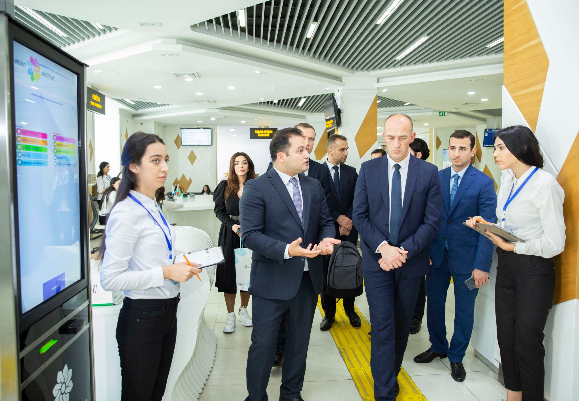 Qonaqlara “ASAN xidmət” mərkəzlərinin yaradılması məqsədləri və fəaliyyət istiqamətləri barədə ətraflı məlumat verilib. Qeyd olunub ki, şəffaflığın artırılması və müasir innovasiyaların tətbiqi baxımından “ASAN xidmət”in yaradılması ilə səmərəli dövlət idarəçiliyinin təmin edilməsi sahəsində ciddi nailiyyətlər əldə olunub.