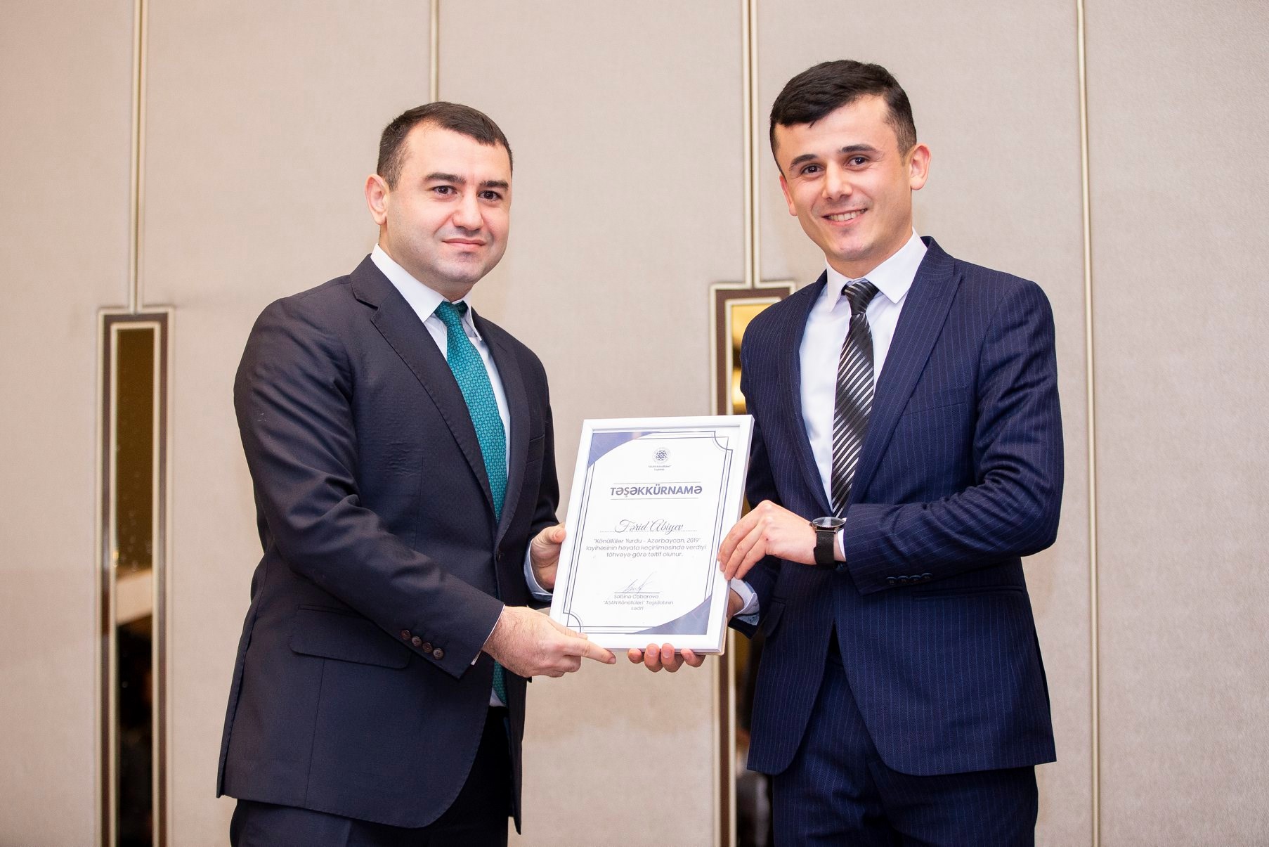 25 yanvar 2020-ci il tarixində Bakı Konqres Mərkəzində “Könüllülər Yurdu –Azərbaycan” layihəsinin bağlanış mərasimi keçirilib. “Könüllülər Yurdu – Azərbaycan” layihəsi Azərbaycan Respublikasının Prezidenti yanında Vətəndaşlara Xidmət və Sosial İnnovasiyalar üzrə Dövlət Agentliyi, Azərbaycan Gənclər Fondu, “ASAN Könüllüləri” Təşkilatının birgə təşkilatçılığı ilə reallaşdırılıb.
