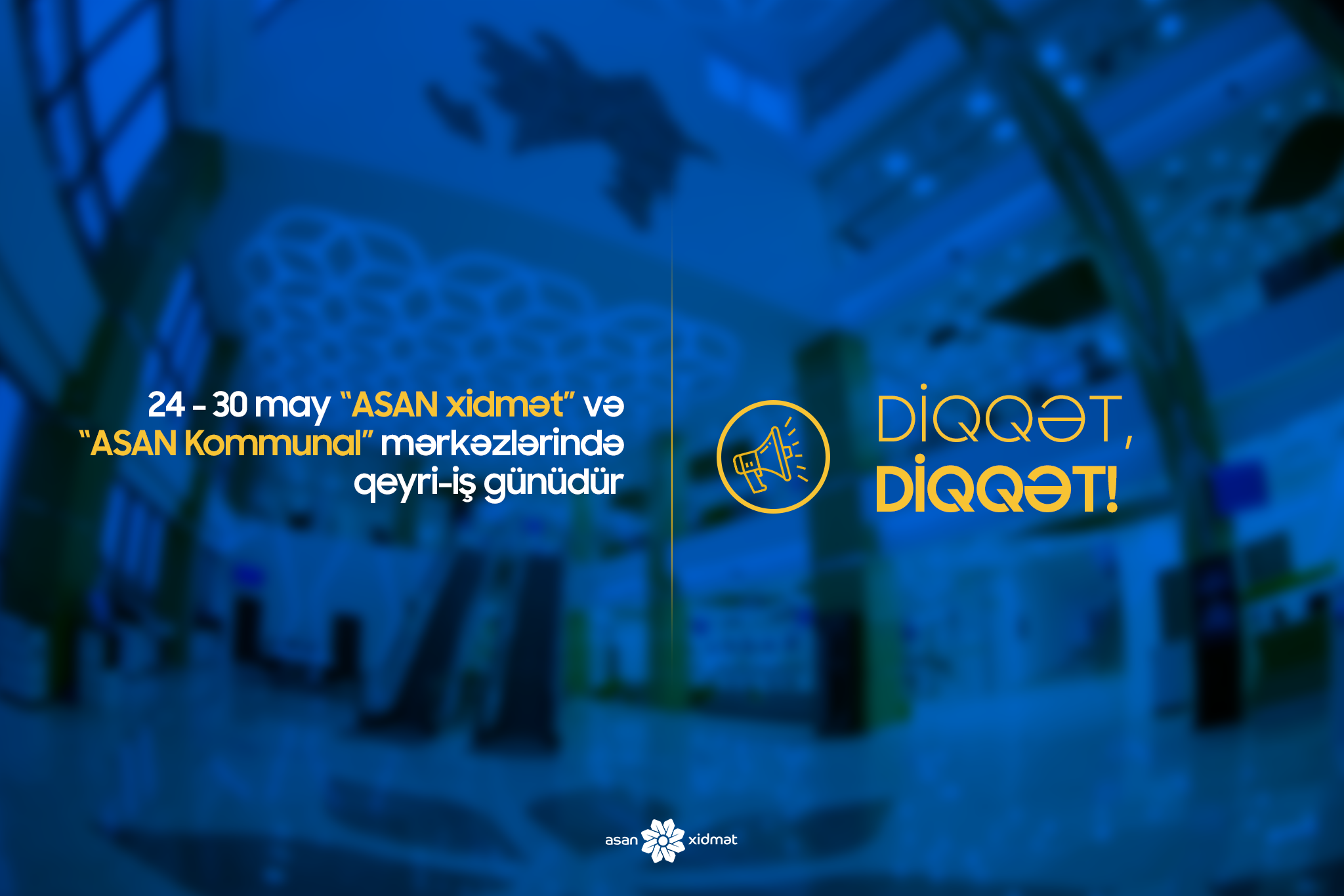 Ramazan bayramı və 28 May – Respublika Günü ilə əlaqədar 24-30 may tarixində “ASAN xidmət” və "ASAN Kommunal" mərkəzlərində qeyri - iş günüdür.