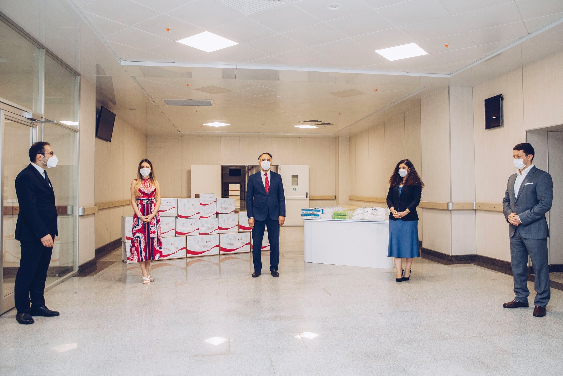 Sosial təşəbbüs çərçivəsində ölkəmizdə COVID-19 pandemiyası ilə effektiv və təhlükəsiz mübarizə istiqamətində karantin rejimində fəaliyyət göstərən min nəfər tibb personalının istifadəsi üçün nəzərdə tutulan ləvazimatlara min ədəd qoruyucu eynək, min ədəd qoruyucu kombinezon, 3 min şəffaf maska, 21 min əlcək, 7 min baxil və 20 min respirator maska daxildir.