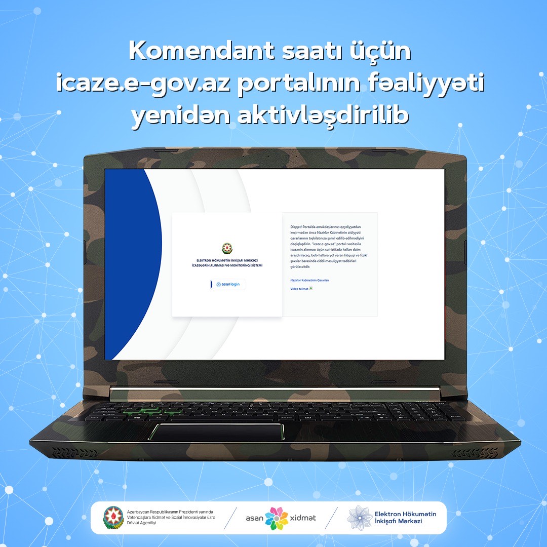 Komendant saatı üçün icaze.e-gov.az portalının fəaliyyəti yenidən aktivləşdirilib