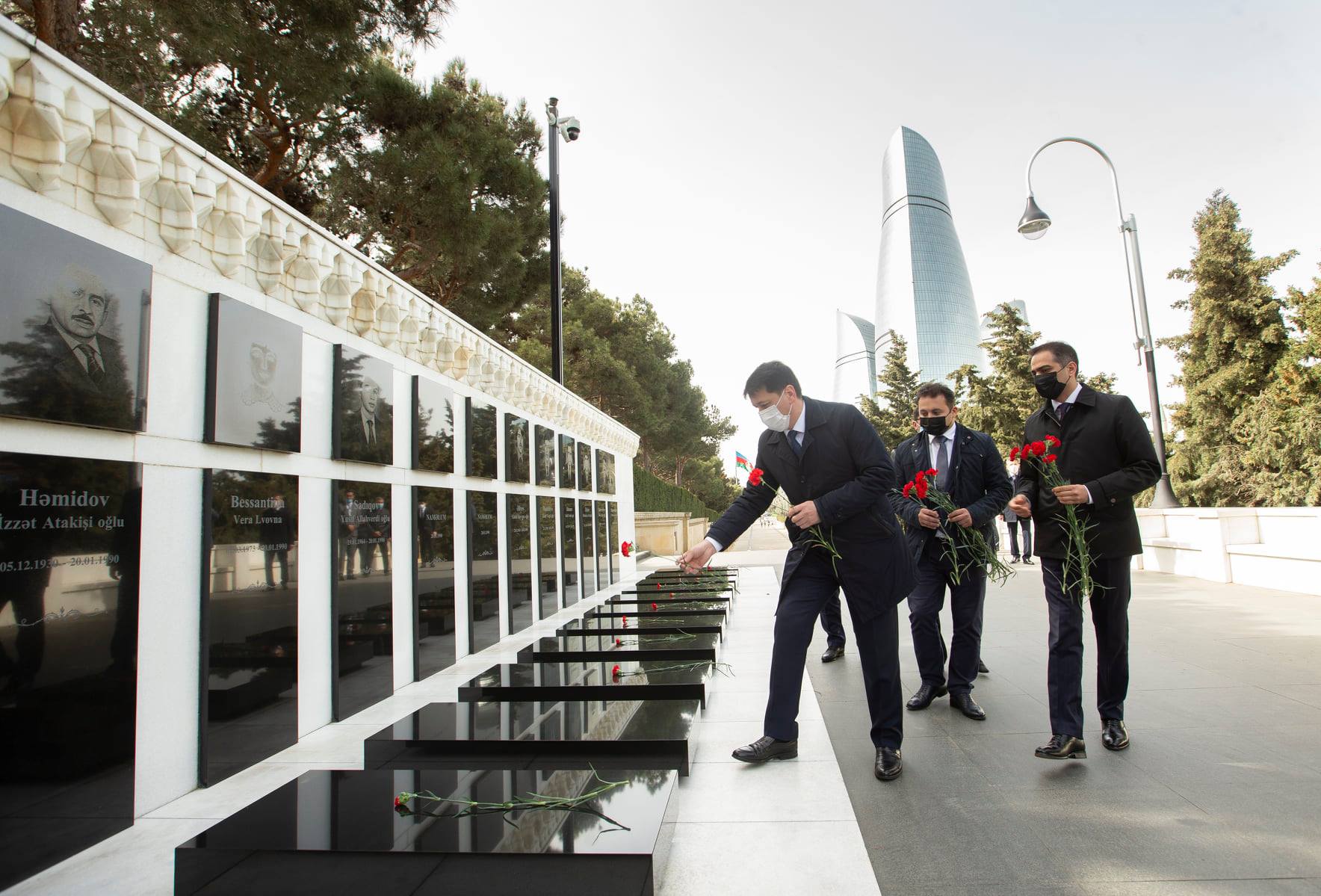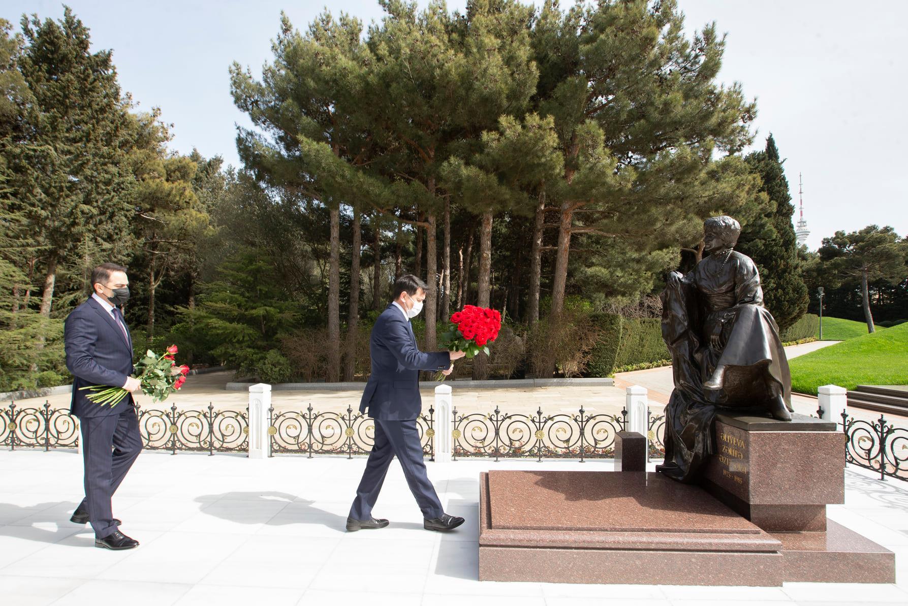 Səfərin ilk günü Özbəkistan nümayəndə heyəti Fəxri xiyabanda ümummilli lider Heydər Əliyevin xatirəsini ehtiramla yad edib, məzarı önünə əklil qoyub. Görkəmli oftalmoloq alim, akademik Zərifə xanım Əliyevanın da xatirəsi anılıb, məzarı üzərinə tər güllər düzülüb. Sonra qonaqlar Şəhidlər xiyabanına gələrək ölkəmizin azadlığı və suverenliyi uğrunda canlarından keçmiş qəhrəman Vətən övladlarının xatirəsini ehtiramla yad edib, “Əbədi məşəl” abidəsinin önünə əklil qoyublar.