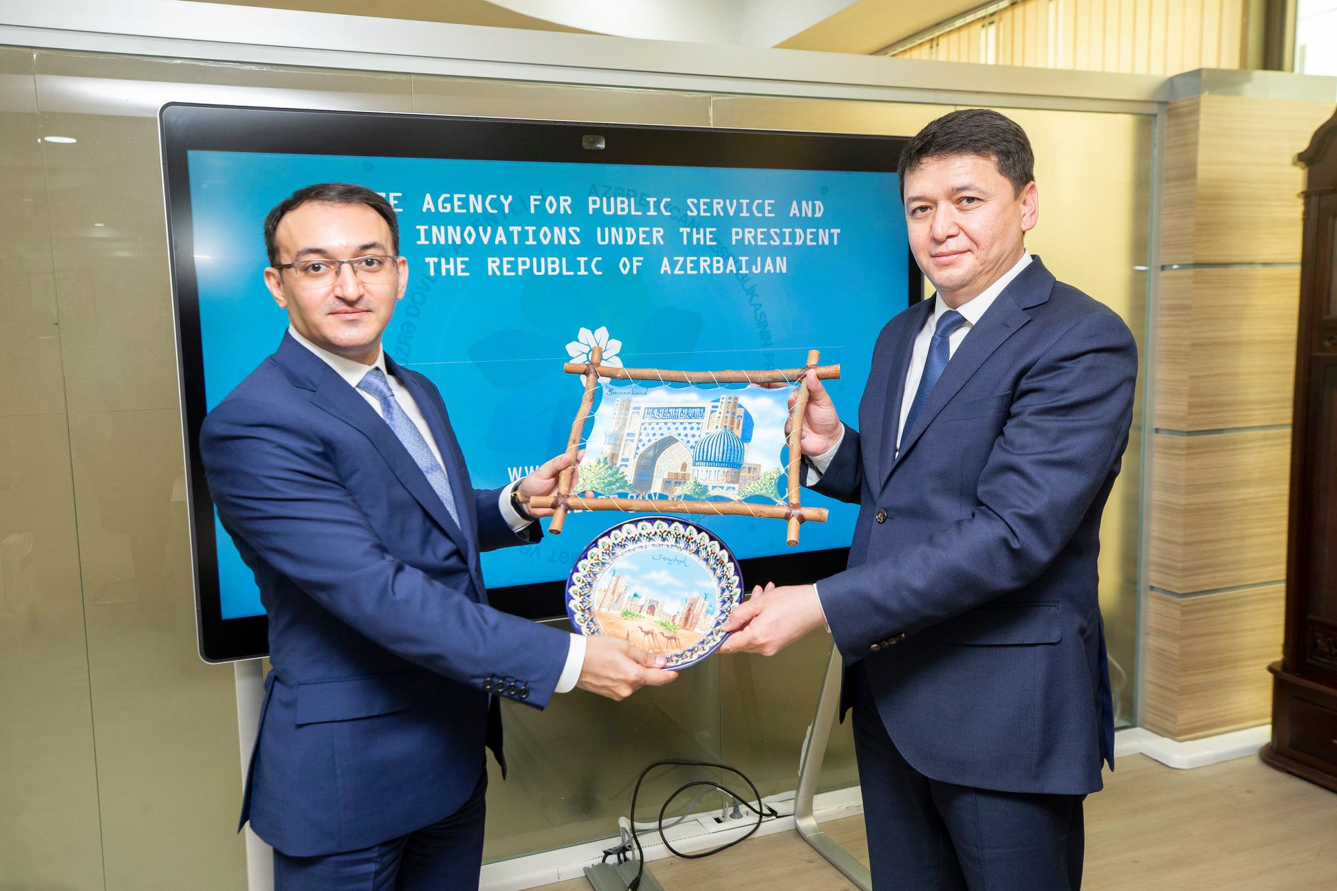Səfər çərçivəsində, Dövlət Agentliyinin sədri Ülvi Mehdiyev ilə Özbəkistanın Ədliyyə Nazirliyi yanında Dövlət Xidmətləri Agentliyinin direktoru Uluqbek Muxammadiyev arasında görüş baş tutub. Görüşdə qonağa “ASAN xidmət” mərkəzlərinin fəaliyyəti barədə ətraflı məlumat verilib. Bildirilib ki, şəffaflığın artırılması və müasir innovasiyaların tətbiqi baxımından “ASAN xidmət”in yaradılması ilə Azərbaycanda səmərəli dövlət idarəçiliyinin təmin edilməsi sahəsində ciddi nailiyyətlər əldə olunub. Qeyd edilib ki, “ASAN xidmət”ə bu günədək 43 milyona yaxın vətəndaş müraciəti qeydə alınıb. Bundan başqa “ASAN xidmət”in 2015-ci ildə Birləşmiş Millətlər Təşkilatının Dövlət Xidmətləri Mükafatına, 2019-cu ildə isə BMT-nin rəqəmsal idarəetmənin tətbiqi ilə dövlət xidmətlərinin inkişafı sahəsində xüsusi mükafatına layiq görülməsi barədə məlumat verilib.