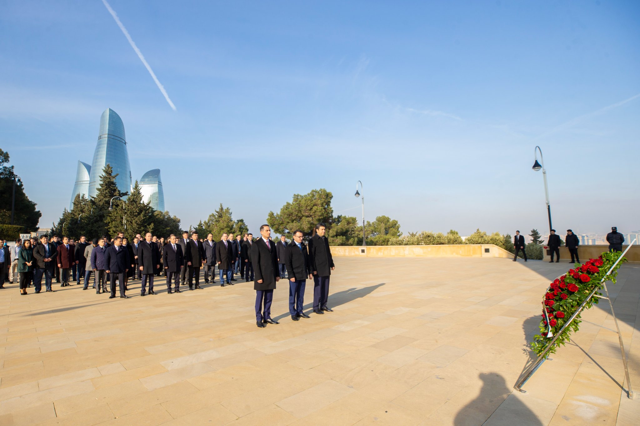 Həmçinin Şəhidlər xiyabanında ölkəmizin azadlığı və suverenliyi uğrunda canlarından keçmiş qəhrəman Vətən övladlarının xatirəsi ehtiramla yad edilib, “Əbədi məşəl” abidəsinin önünə əklil qoyulub.