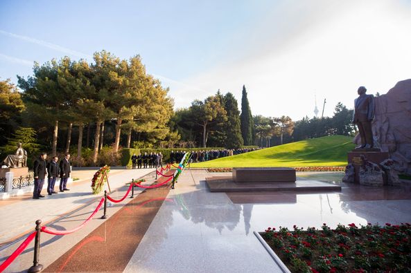 Ulu öndər Heydər Əliyevin xatirəsi ehtiramla yad edilib, məzarı önünə əklil qoyulub.