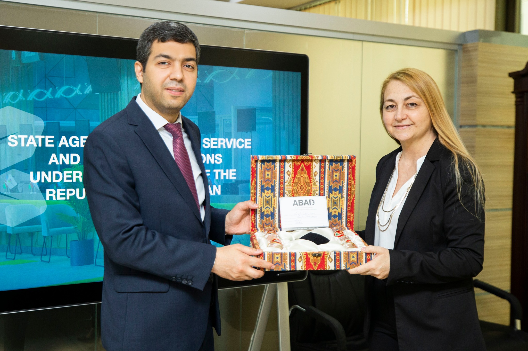 Sonda qonağa “ABAD”çı tərəfindən hazırlanmış xatirə hədiyyəsi təqdim edilib.