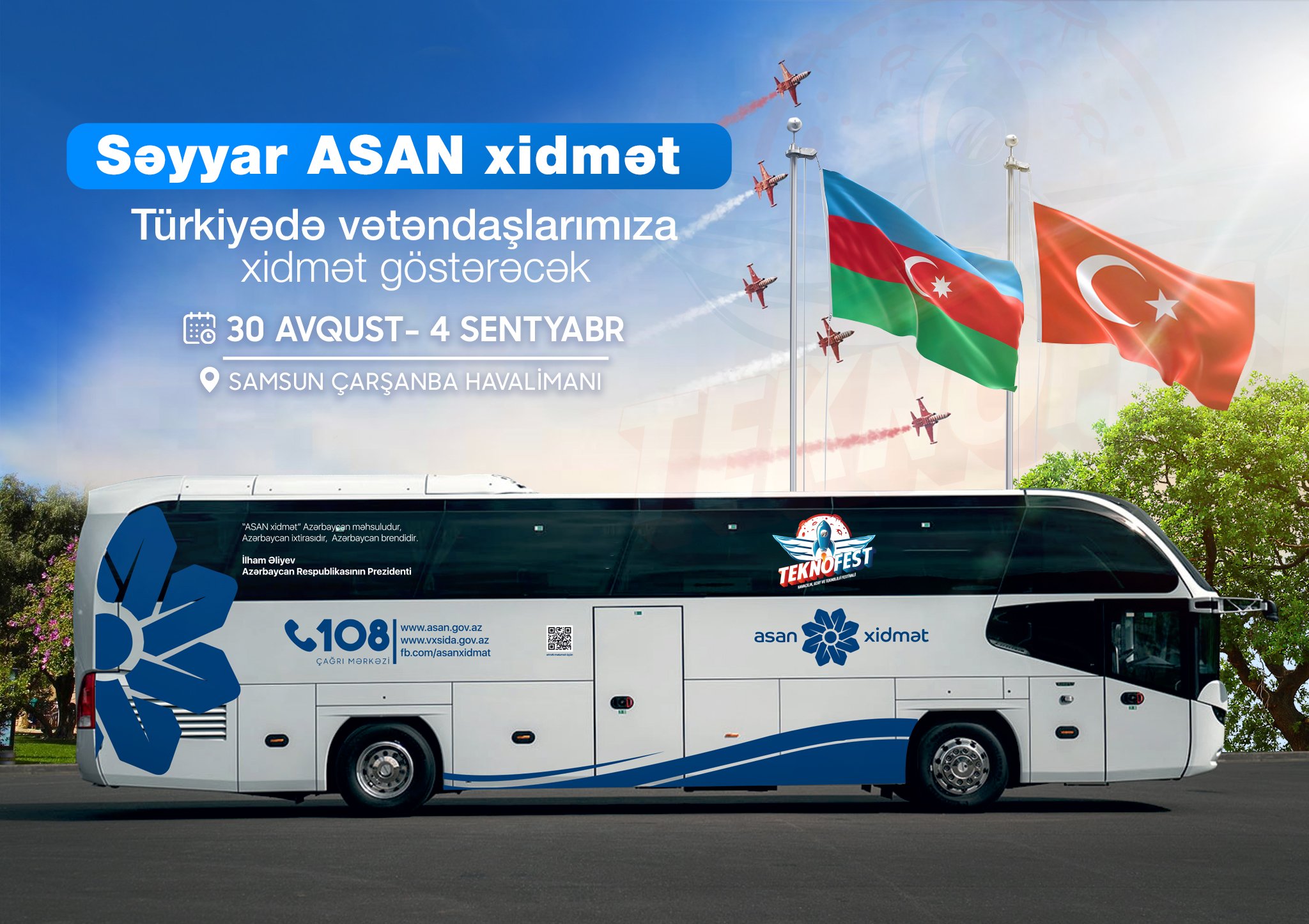 2022-ci ilin 30 avqust – 4 sentyabr tarixlərində Türkiyə Respublikasının Samsun şəhərində Aerokosmik və texnologiya festivalı (TEKNOFEST) günləri çərçivəsində Türkiyədə yaşayan azərbaycanlılara dövlət xidmətlərinin çatdırılması məqsədilə Səyyar ASAN xidmət avtobusu vasitəsilə xidmət göstəriləcək.