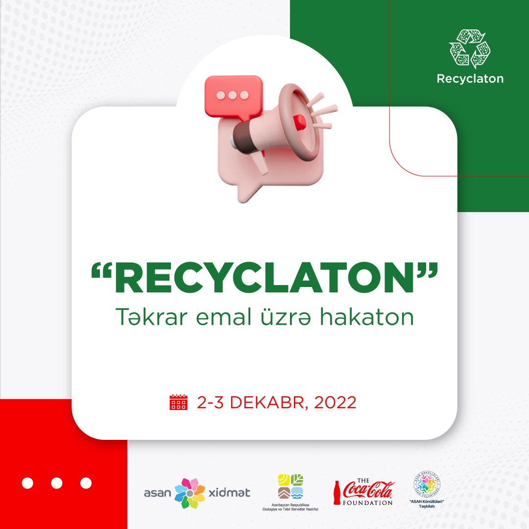 "ASAN xidmət"in, “ASAN Könüllüləri” Təşkilatının və "Coca-Cola" Fondunun birgə əməkdaşlığı, Ekologiya və Təbii Sərvətlər Nazirliyinin tərəfdaşlığı ilə “Tullantısız Dünya” proqramı çərçivəsində Azərbaycanda ilk dəfə tullantıların azaldılması üzrə “Recyclaton” hakatonu keçiriləcək.