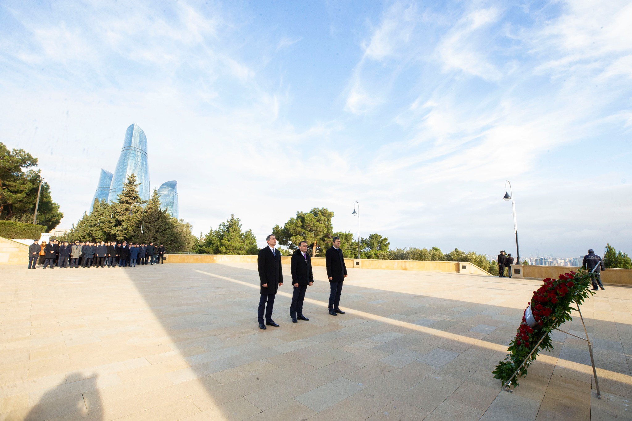 Həmçinin Şəhidlər xiyabanında ölkəmizin azadlığı və suverenliyi uğrunda canlarından keçmiş qəhrəman Vətən övladlarının xatirəsi ehtiramla yad edilib, “Əbədi məşəl” abidəsinin önünə əklil qoyulub.