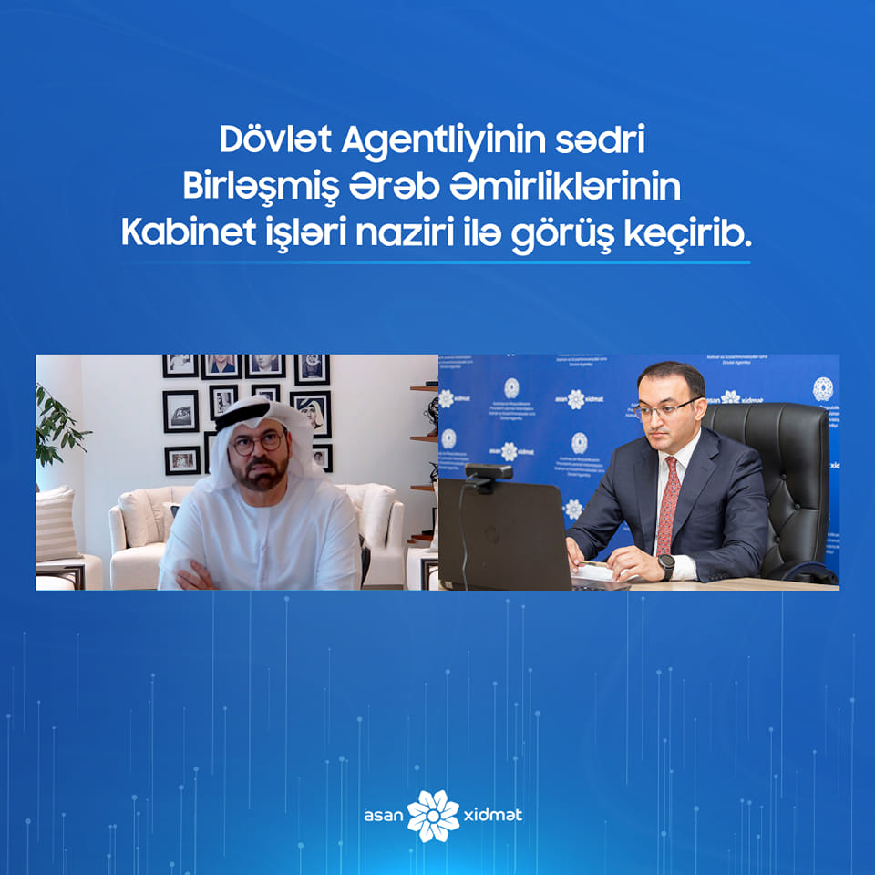 Azərbaycan Respublikasının Prezidenti yanında Vətəndaşlara Xidmət və Sosial İnnovasiyalar üzrə Dövlət Agentliyinin sədri Ülvi Mehdiyev və Birləşmiş Ərəb Əmirliklərinin Kabinet işləri naziri Məhəmməd bin Abdullah Əl Qərqavi arasında görüş keçirilib. Onlayn formada təşkil olunan görüş zamanı Ülvi Mehdiyev cari ilin 13-15 fevral tarixində Dubay şəhərində keçirilən 10-cu Dünya Hökumət Sammitinin uğurla təşkili və Azərbaycan nümayəndə heyətinə göstərilən qonaqpərvərliyə görə Birləşmiş Ərəb Əmirliklərinin Kabinet işləri naziri Məhəmməd bin Abdullah Əl Qərqaviyə təşəkkürünü bildirib.