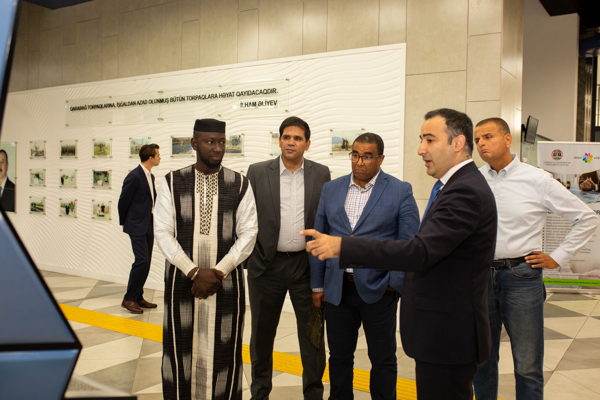 Qonaqlara “ASAN xidmət” mərkəzlərinin yaradılması məqsədləri və fəaliyyət istiqamətləri barədə məlumat verilib. Bildirilib ki, şəffaflığın artırılması və müasir innovasiyaların tətbiqi baxımından “ASAN xidmət”in yaradılması ilə səmərəli dövlət idarəçiliyinin təmin edilməsi sahəsində ciddi nailiyyətlər əldə olunub.