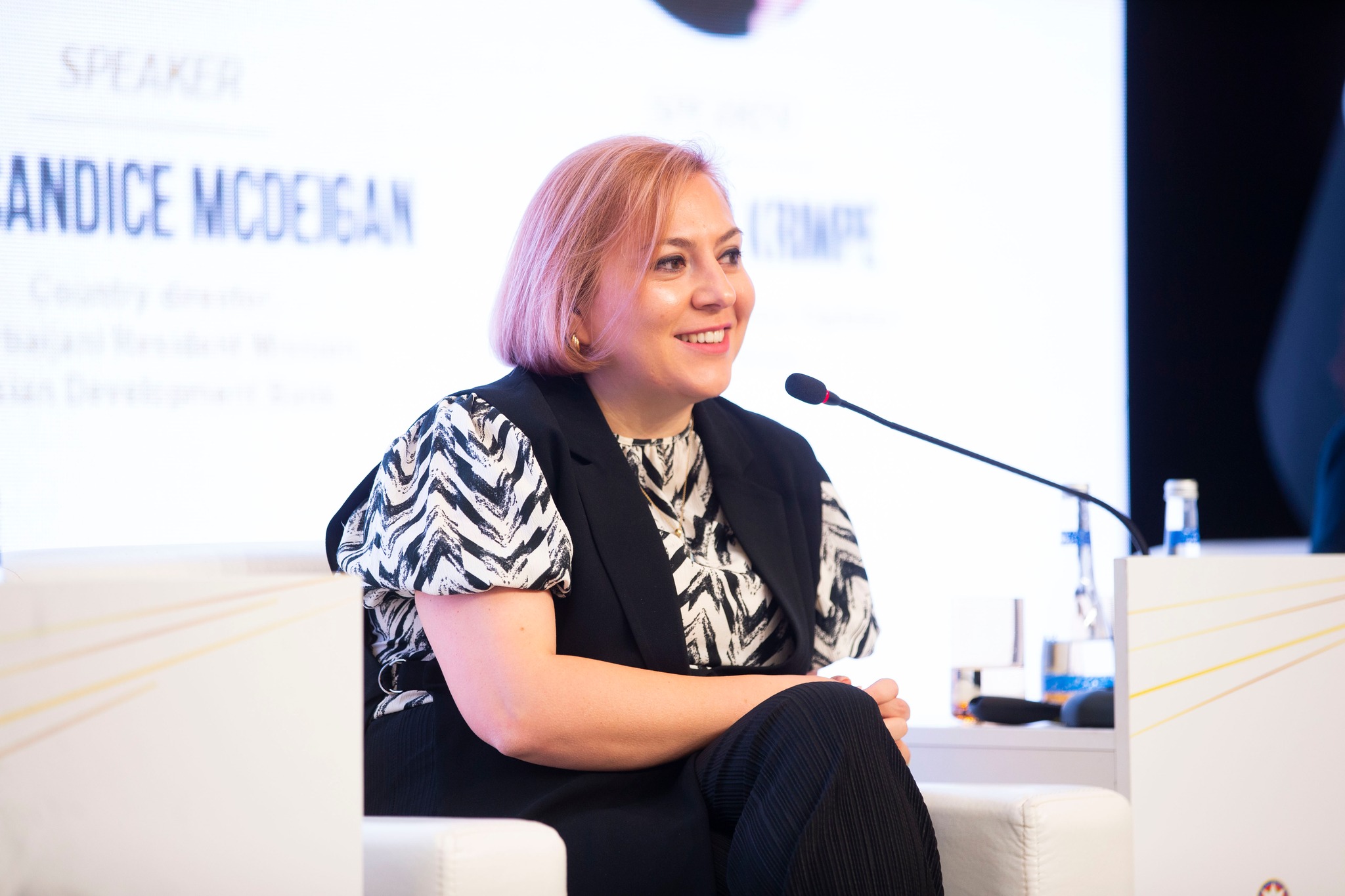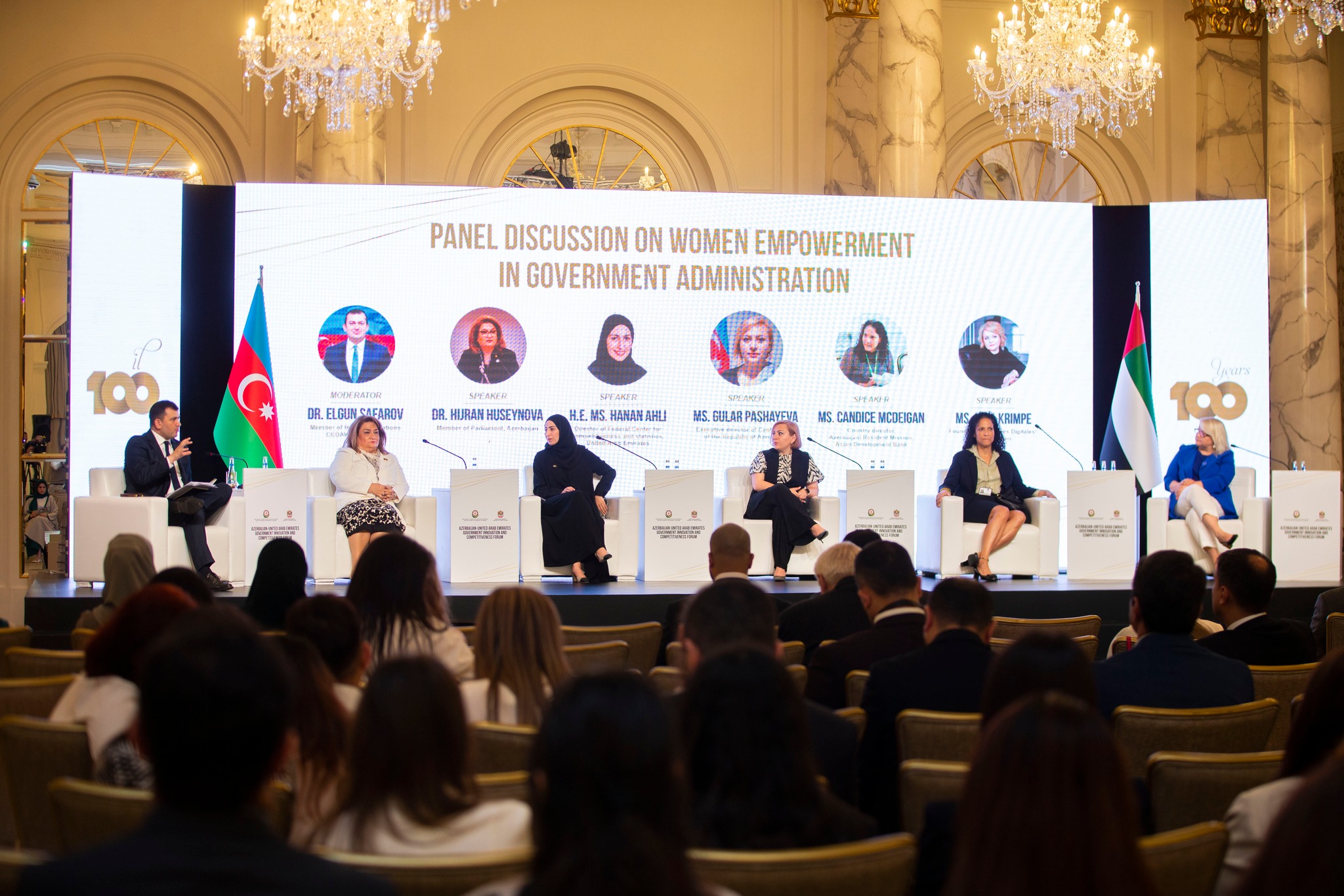 “Dövlət idarəçiliyində qadınların səlahiyyətlərinin artırılması” mövzusuna həsr edilən ikinci panel müzakirələrdə Azərbaycan Respublikasının Milli Məclisinin deputatı Hicran Hüseynova, Federal Rəqabət Qabiliyyəti və Statistika Təşkilatının icraçı direktoru Hanan Ahli, Mərkəzi Bankın İcraçı direktoru Gülər Paşayeva, Asiya İnkişaf Bankının Azərbaycan üzrə ölkə direktoru Kendis Makdeyqn, “Femmes Digitales” təşkilatının təsisçisi Yana Krimpe çıxış ediblər.
