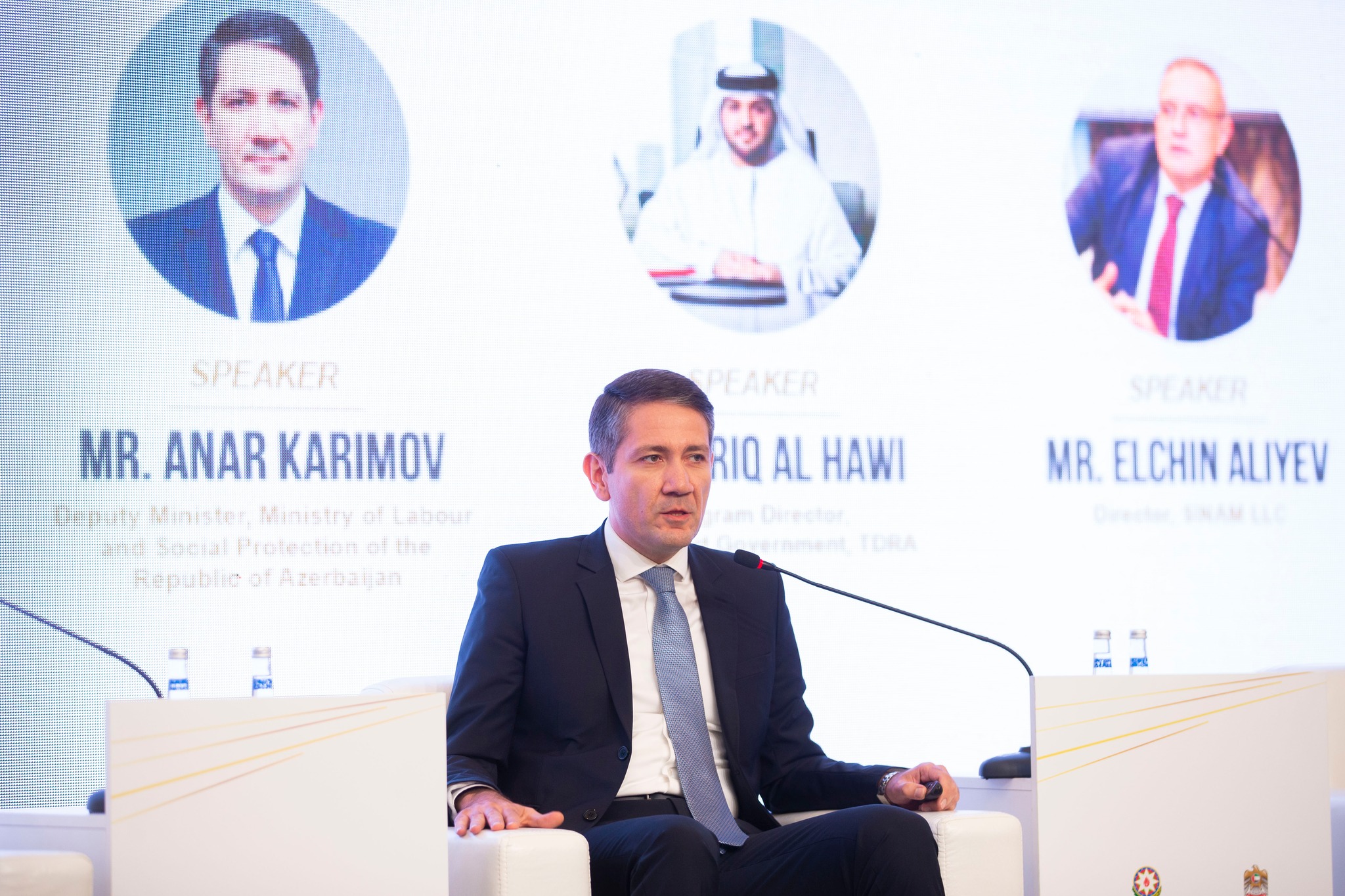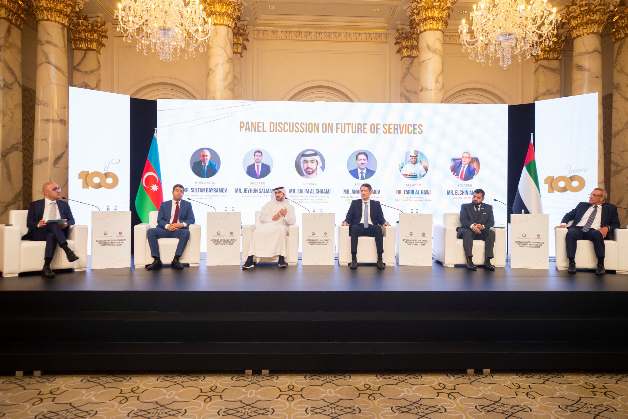 “Xidmətlərin gələcəyi” mövzusunda təşkil olunan ilk panel müzakirələrdə Dövlət Agentliyinin sədr müavini Ceyhun Salmanov, BƏƏ Baş Nazirinin Ofisinin Hökumət xidmətlərinin inkişafı bölməsinin rəhbəri Salim Al Şaami, əmək və əhalinin sosial müdafiəsi nazirinin müavini Anar Kərimov, BƏƏ Hökumətinin nümayəndəsi Tariq Al Havi, “SİNAM” MMC direktoru Elçin Əliyev çıxış ediblər.