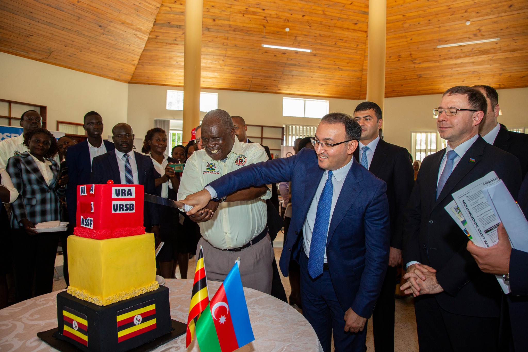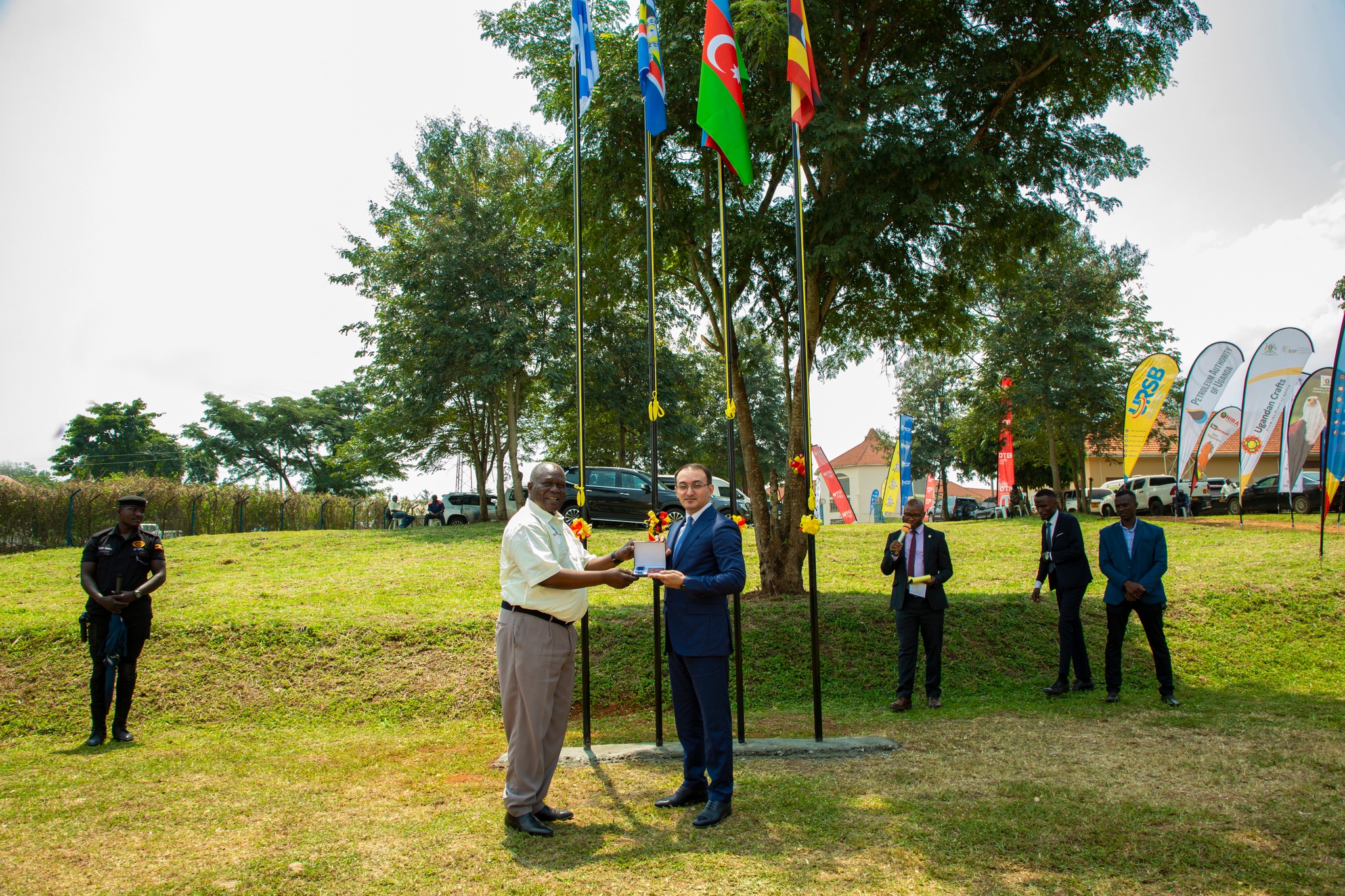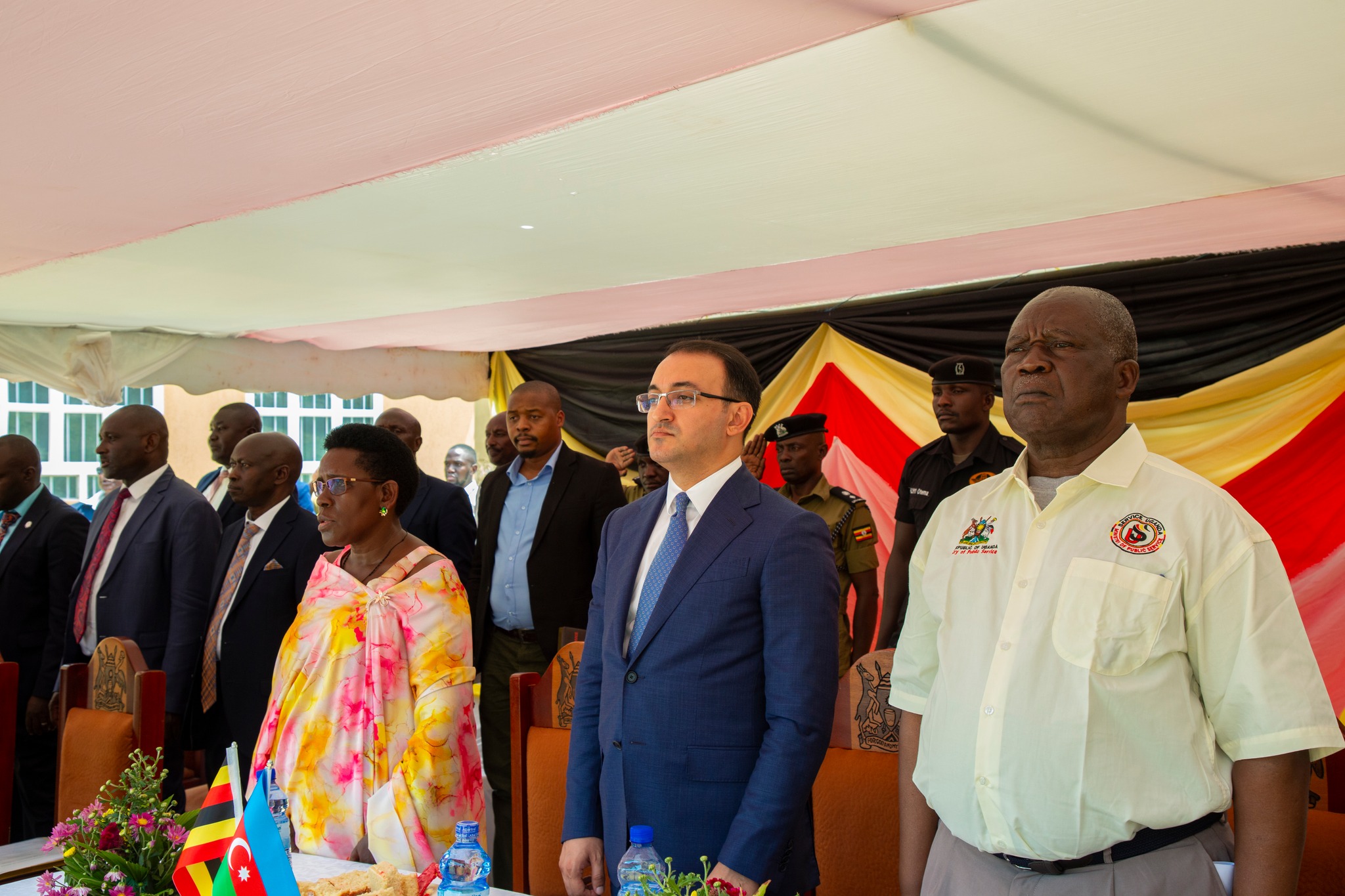 Azərbaycan və Uqanda bayraqlarının ucaldıldığı tədbirdə öncə hər iki ölkənin dövlət himnləri səsləndirilib.