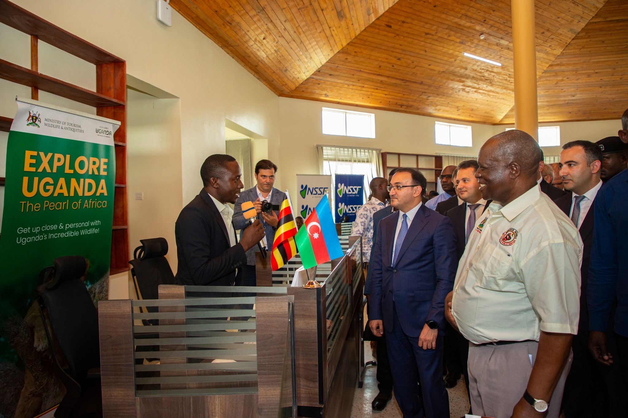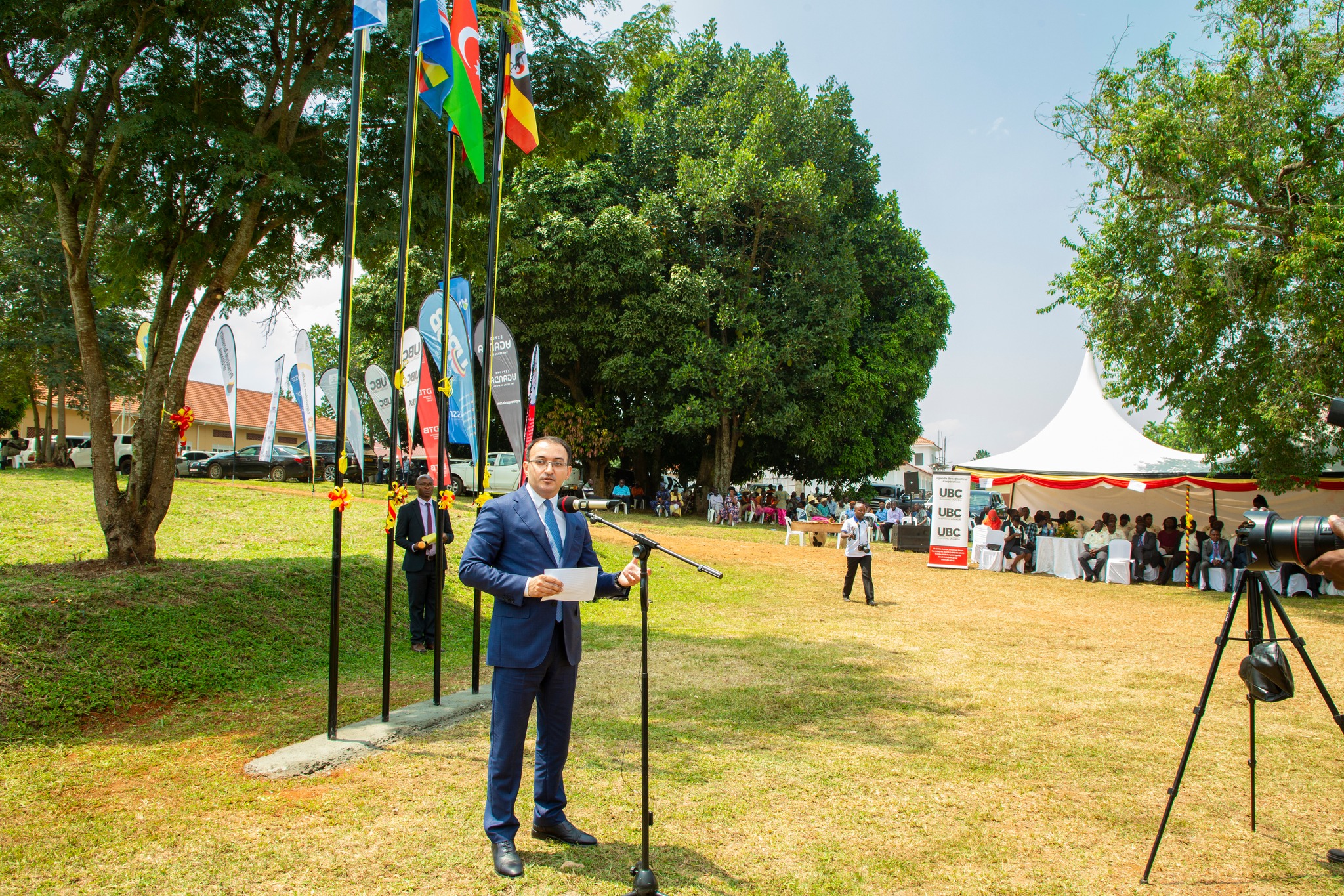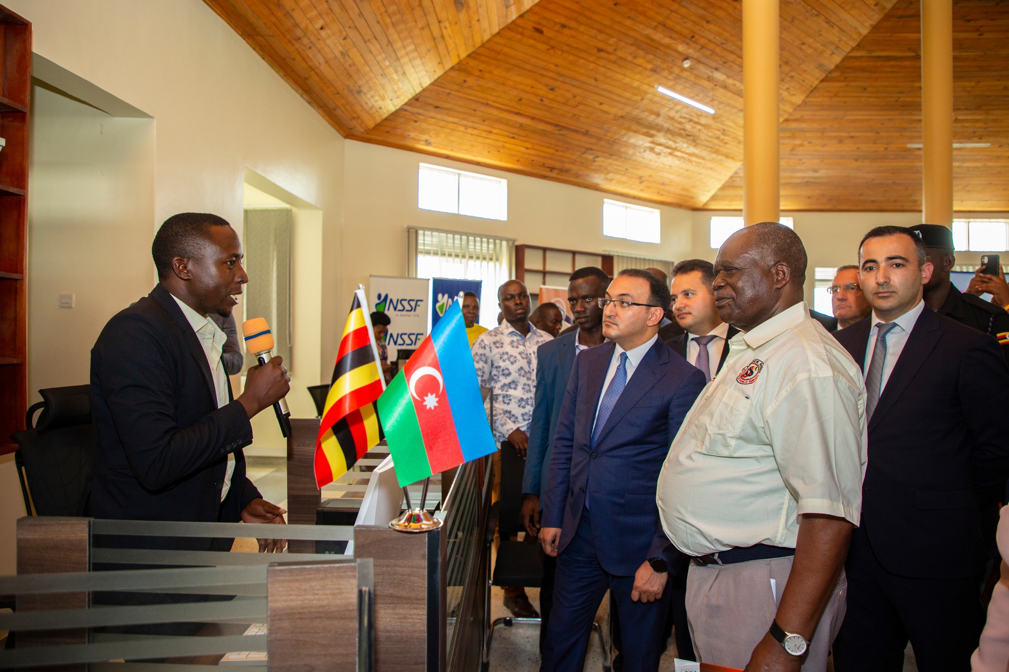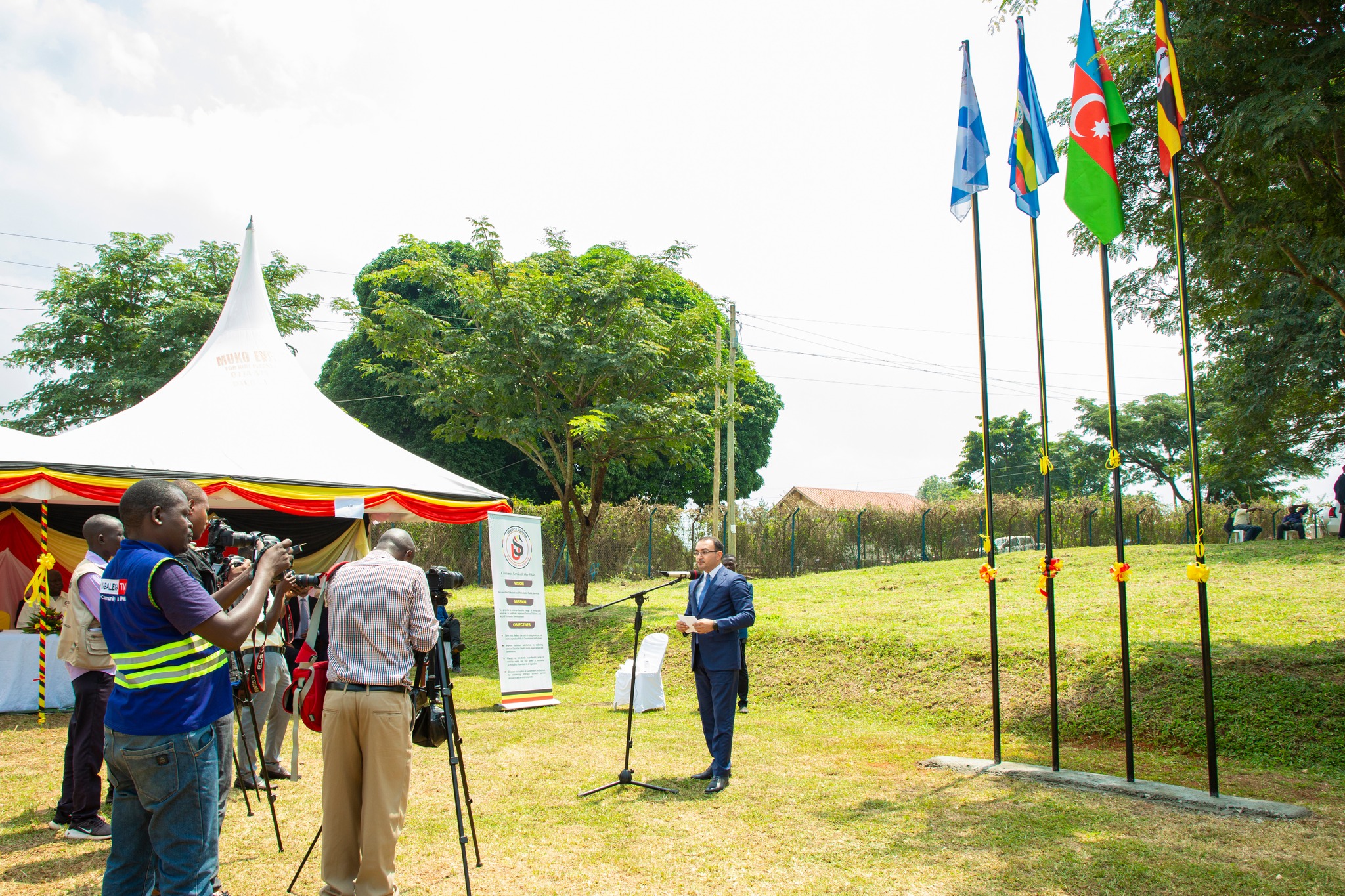 Azərbaycan və Uqanda bayraqlarının ucaldıldığı tədbirdə öncə hər iki ölkənin dövlət himnləri səsləndirilib.