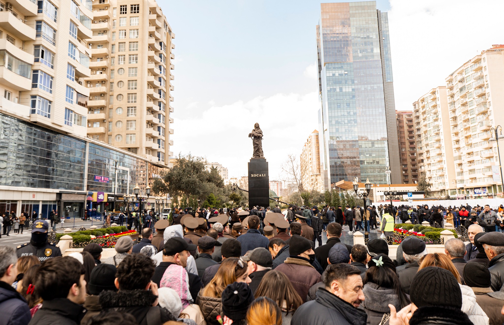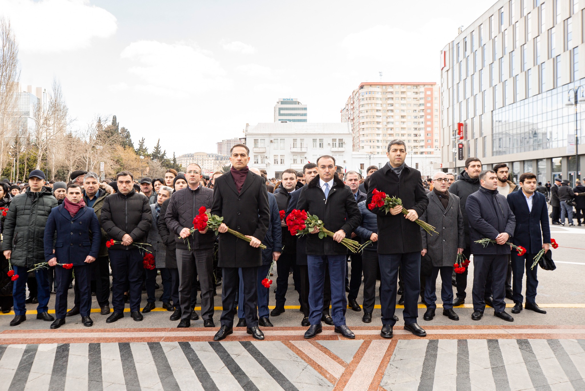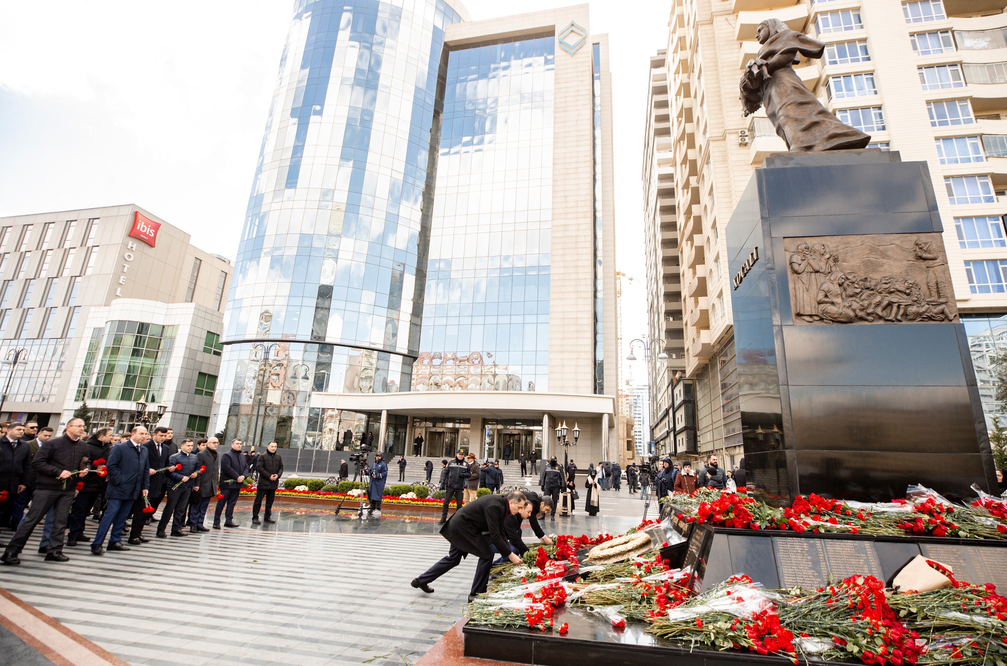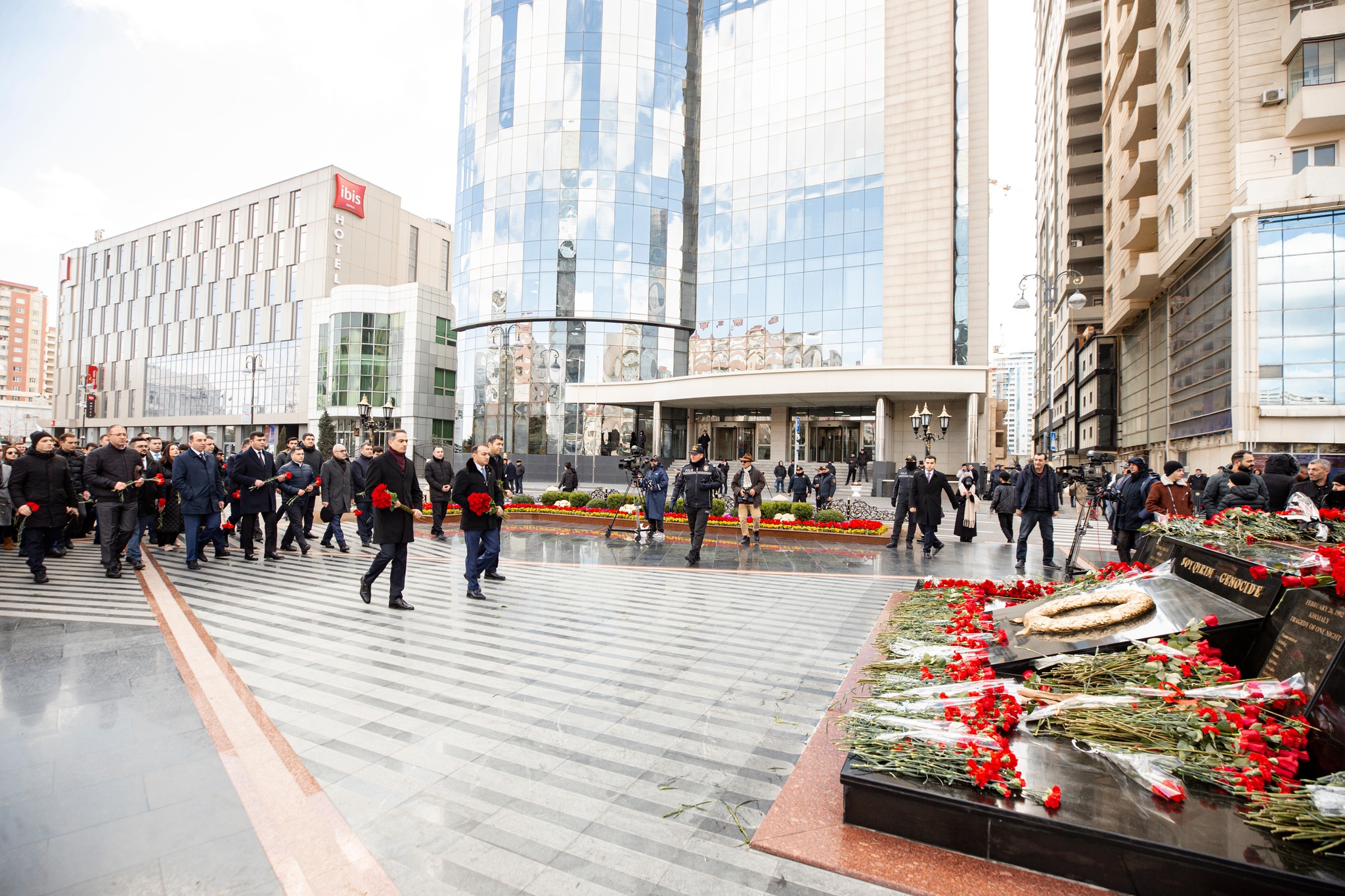 Soyqırımı qurbanlarının xatirəsi ehtiramla yad edilib, abidənin önünə gül dəstələri qoyulub.