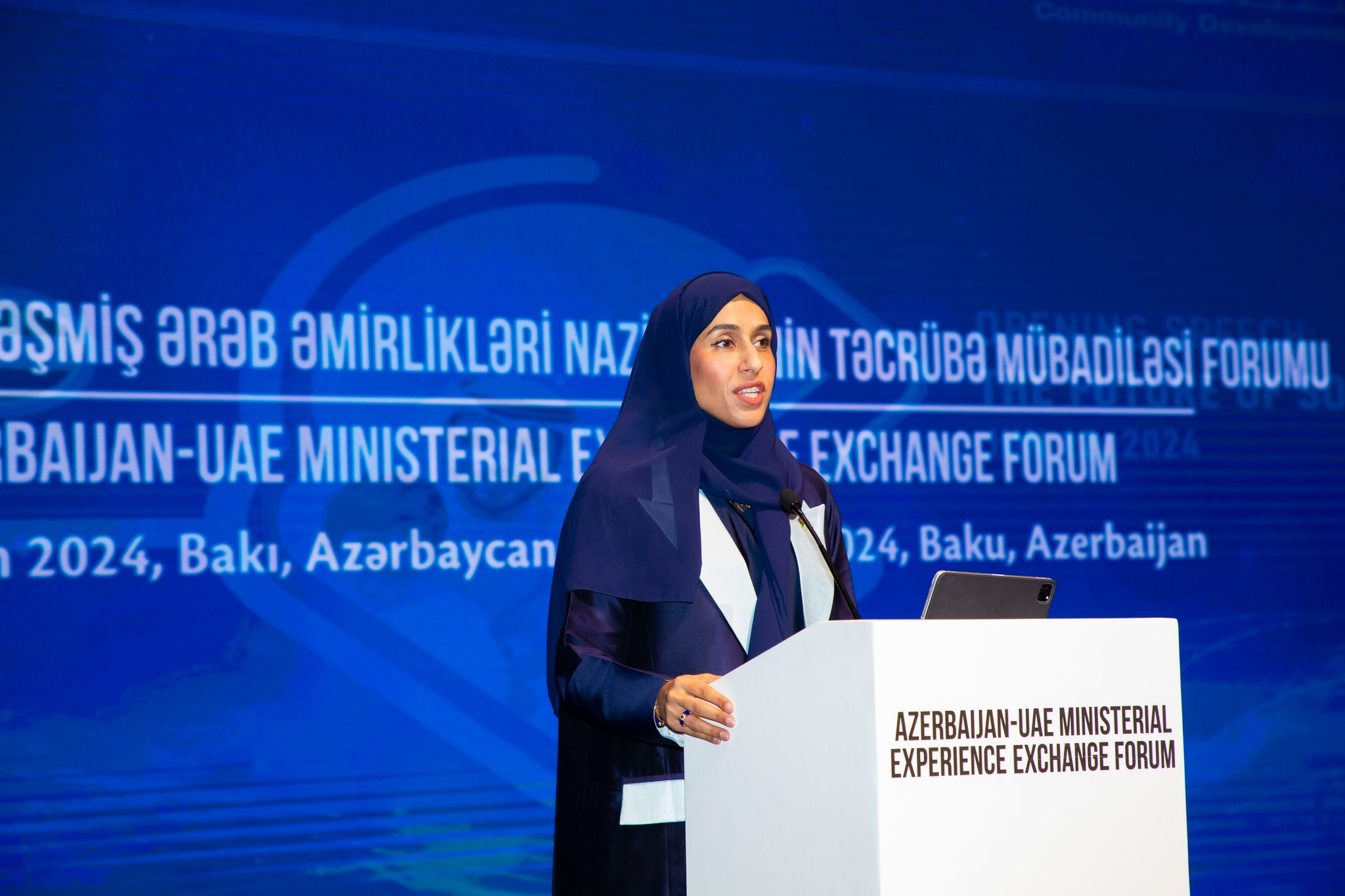 Öncə Azərbaycan Respublikasının Prezidenti yanında Vətəndaşlara Xidmət və Sosial İnnovasiyalar üzrə Dövlət Agentliyinin sədr müavini Ceyhun Salmanov və BƏƏ-nin İctimai İnkişaf Qurumunun icraçı direktoru, dövlət naziri Hessa Bint Eissa Buhumaid açılış nitqi ilə çıxış ediblər. Həmçinin Azərbaycan BƏƏ əməkdaşlığına həsr olunan videotəqdimat nümayiş etdirilib.