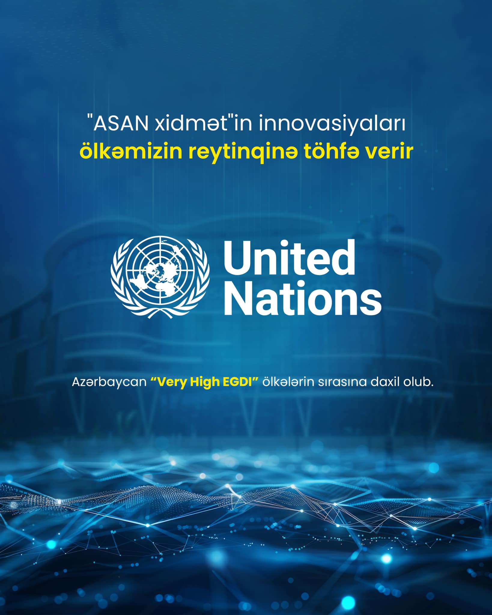 BMT-nin Elektron Hökumətin İnkişaf İndeksi (EGDI) üzrə 2024-cü il hesabatında ölkəmiz irəliləyiş əldə edib və indeksin ən yüksək kateqoriyası hesab edilən “Very High EGDI” ölkələrin sırasına daxil olub.