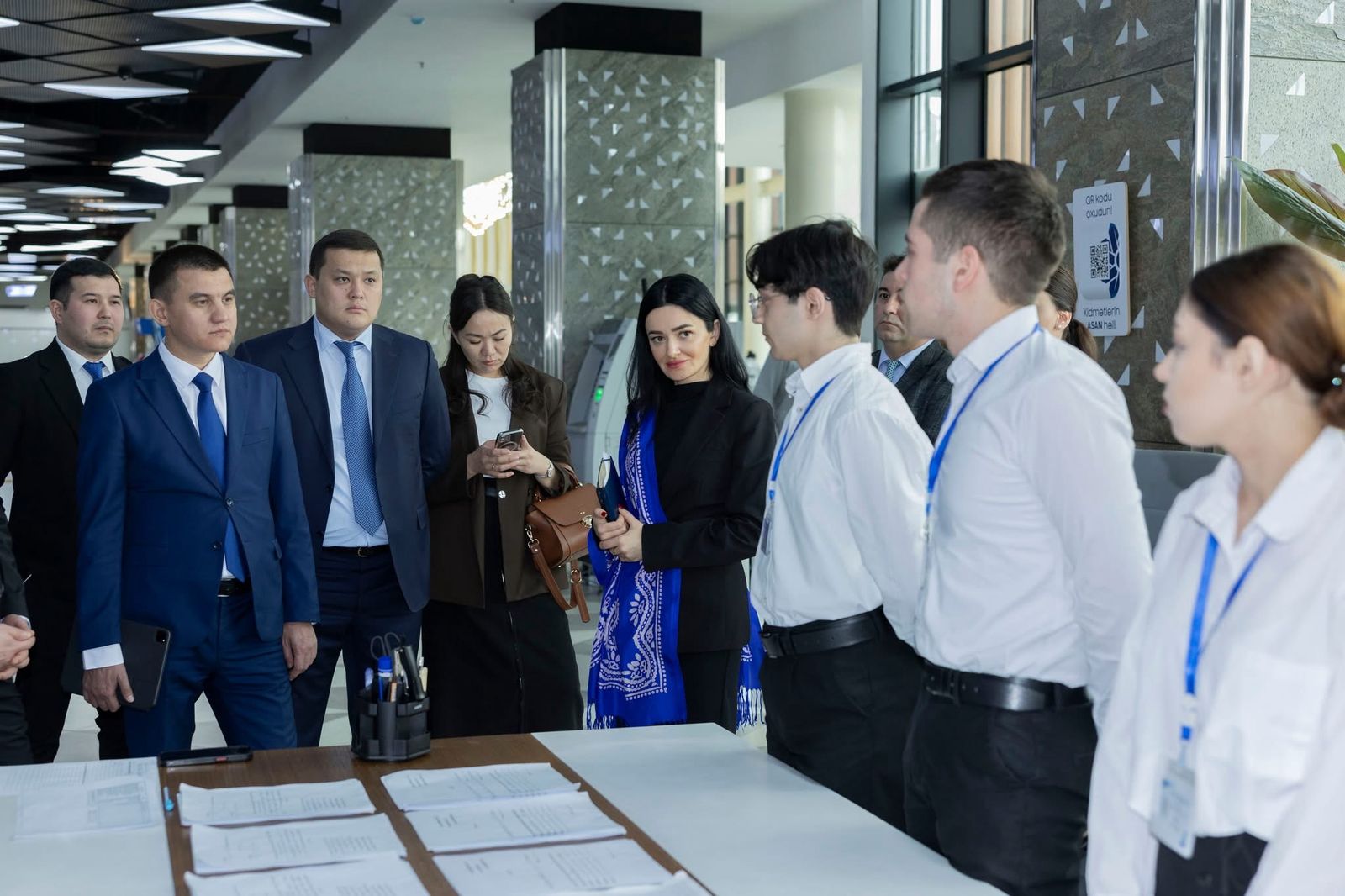 Qazaxıstan Respublikasının Rəqəmsal İnkişaf, İnnovasiyalar və Aerokosmik Sənaye Nazirliyinin nümayəndə heyəti “ASAN xidmət” mərkəzlərinin fəaliyyəti və burada tətbiq olunan innovativ həllərlə yaxından tanış olmaq məqsədilə ölkəmizə səfər edib.