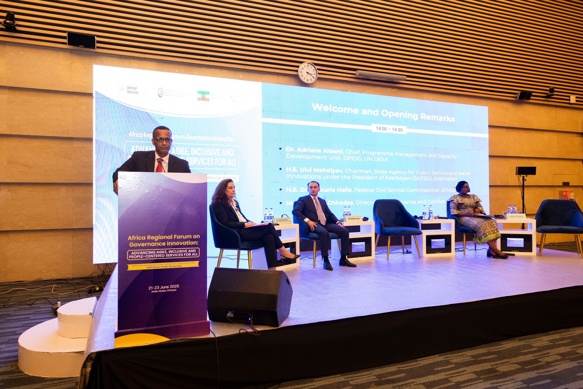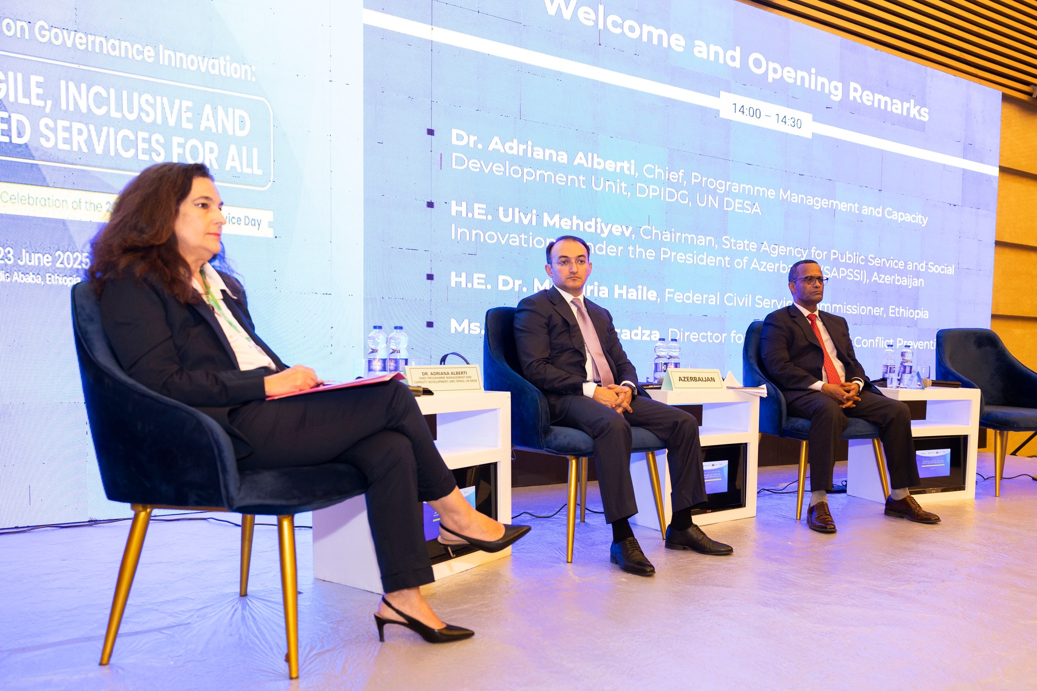 Tədbirin açılışında Dövlət Agentliyinin sədri, BMT-nin İqtisadi və Sosial Məsələlər departamentinin nümayəndəsi, Efiopiyanın Dövlət Xidmətləri Komissiyasının rəhbəri və Afrika İttifaqının İdarəetmə və Münaqişələrin Qarşısının Alınması üzrə direktoru çıxış ediblər.