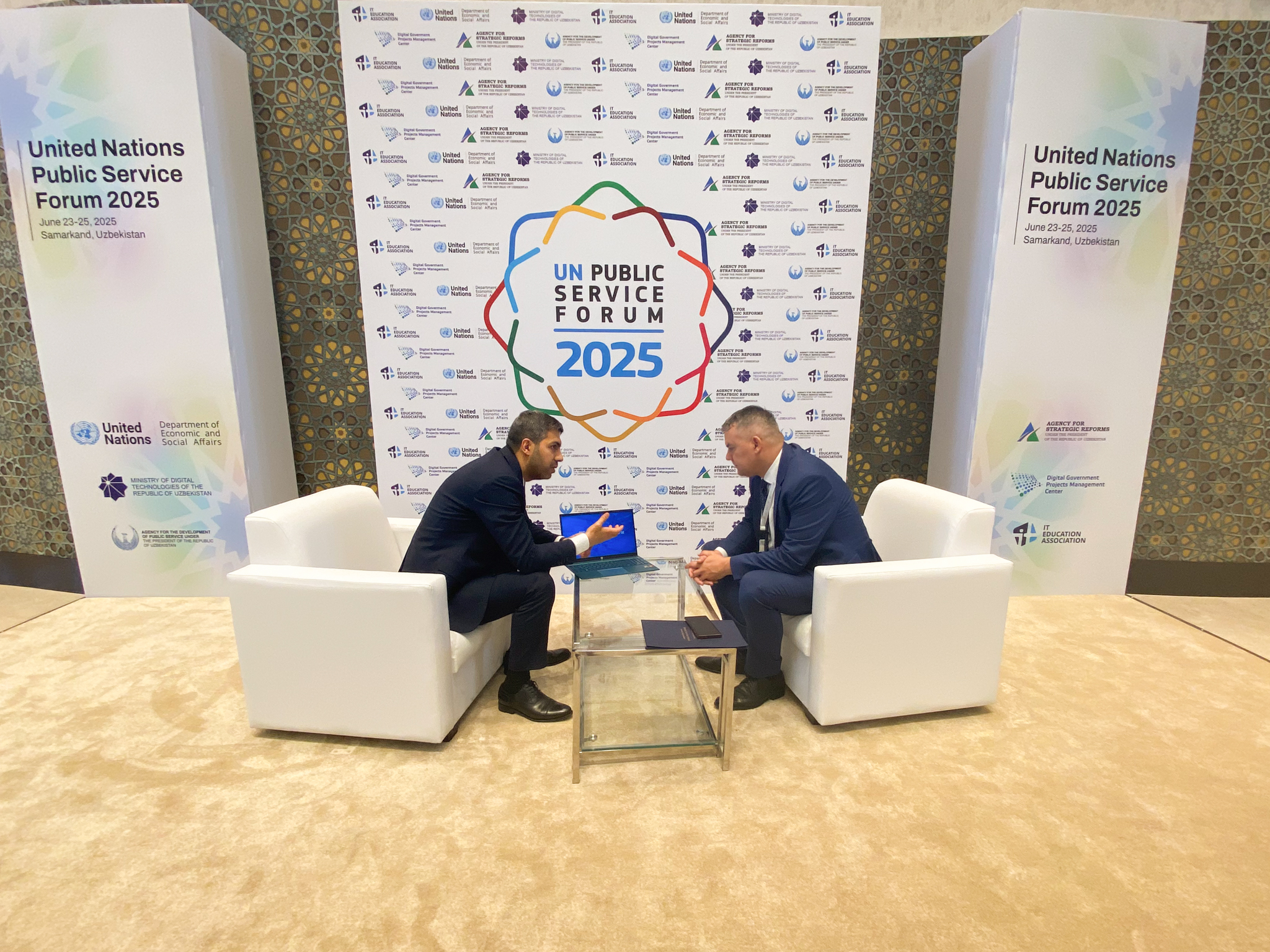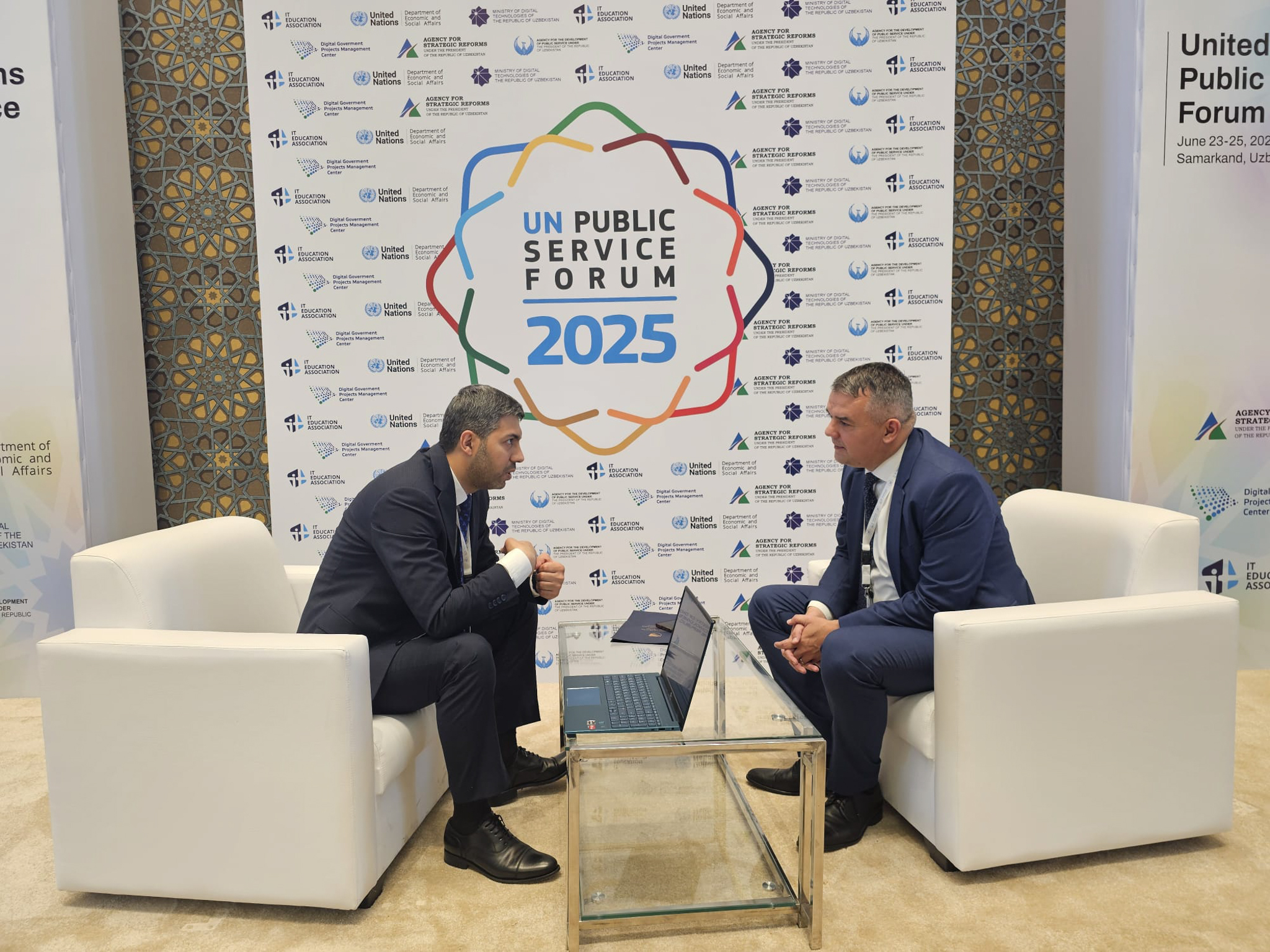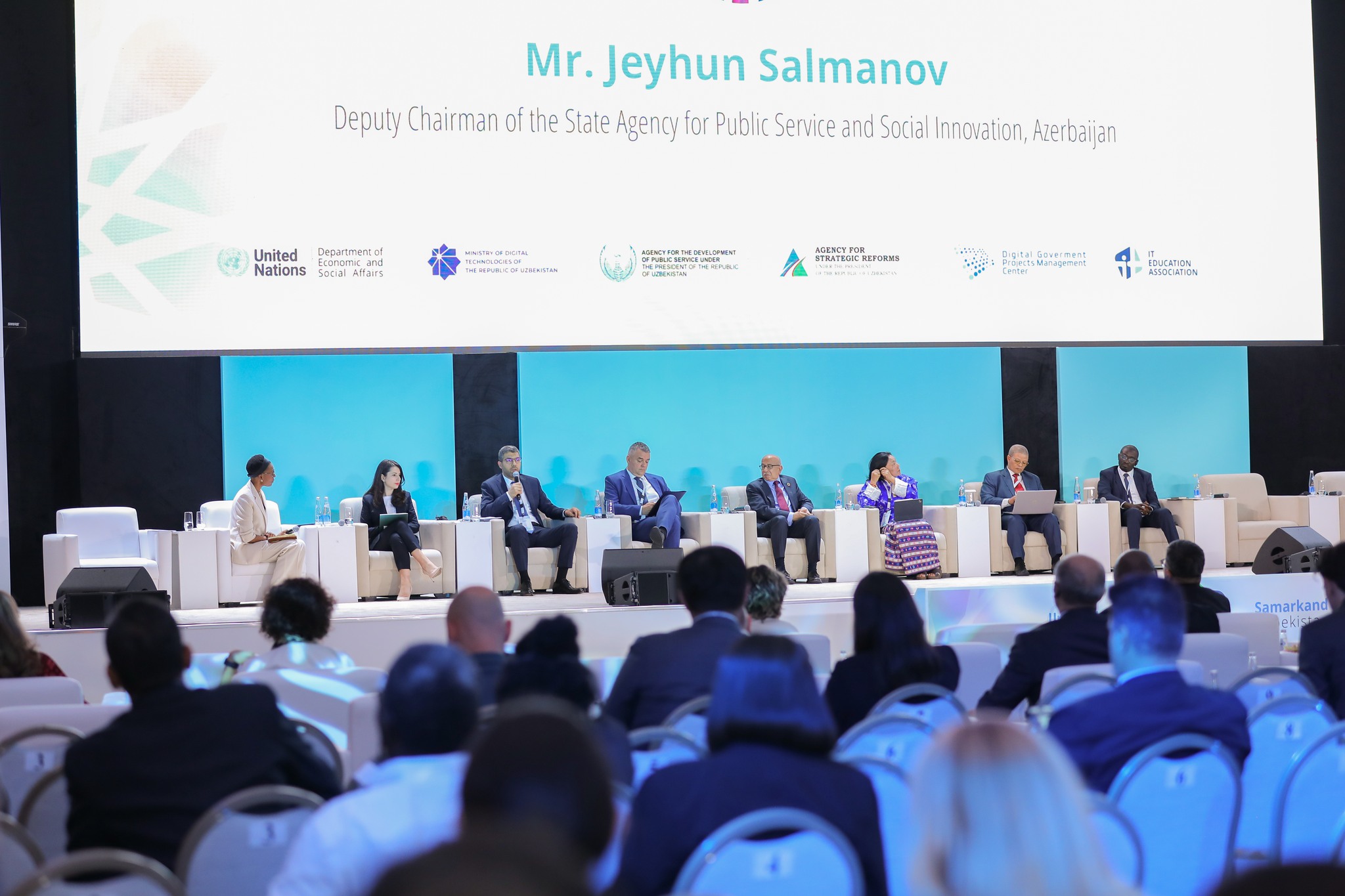 Azərbaycan Respublikasının Prezidenti yanında Vətəndaşlara Xidmət və Sosial İnnovasiyalar üzrə Dövlət Agentliyinin sədr müavini Ceyhun Salmanovun rəhbərlik etdiyi nümayəndə heyəti Özbəkistan Respublikasının Səmərqənd şəhərində keçirilən Birləşmiş Millətlər Təşkilatının (BMT) Dövlət Xidmətləri Forumunda iştirak edib.