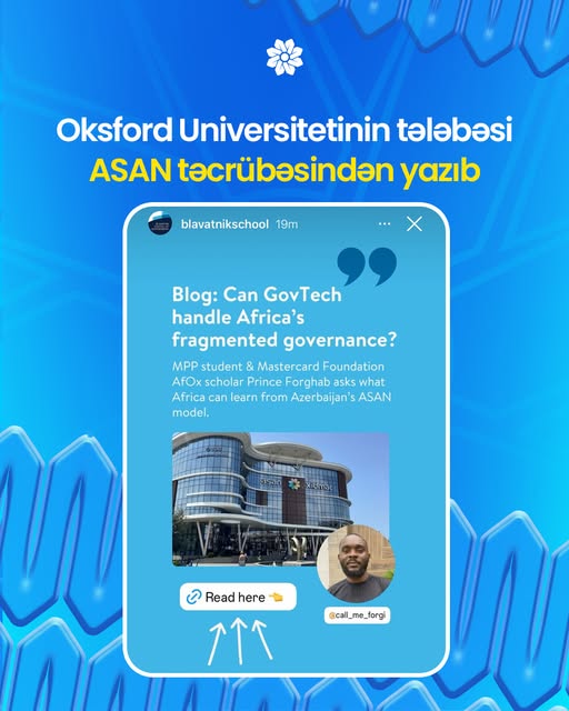 Oxford Universitetinin Blavatnik İdarəçilik Məktəbinin bloqunda ölkəmizin “ASAN xidmət” təcrübəsinə həsr olunmuş məqalə dərc olunub.