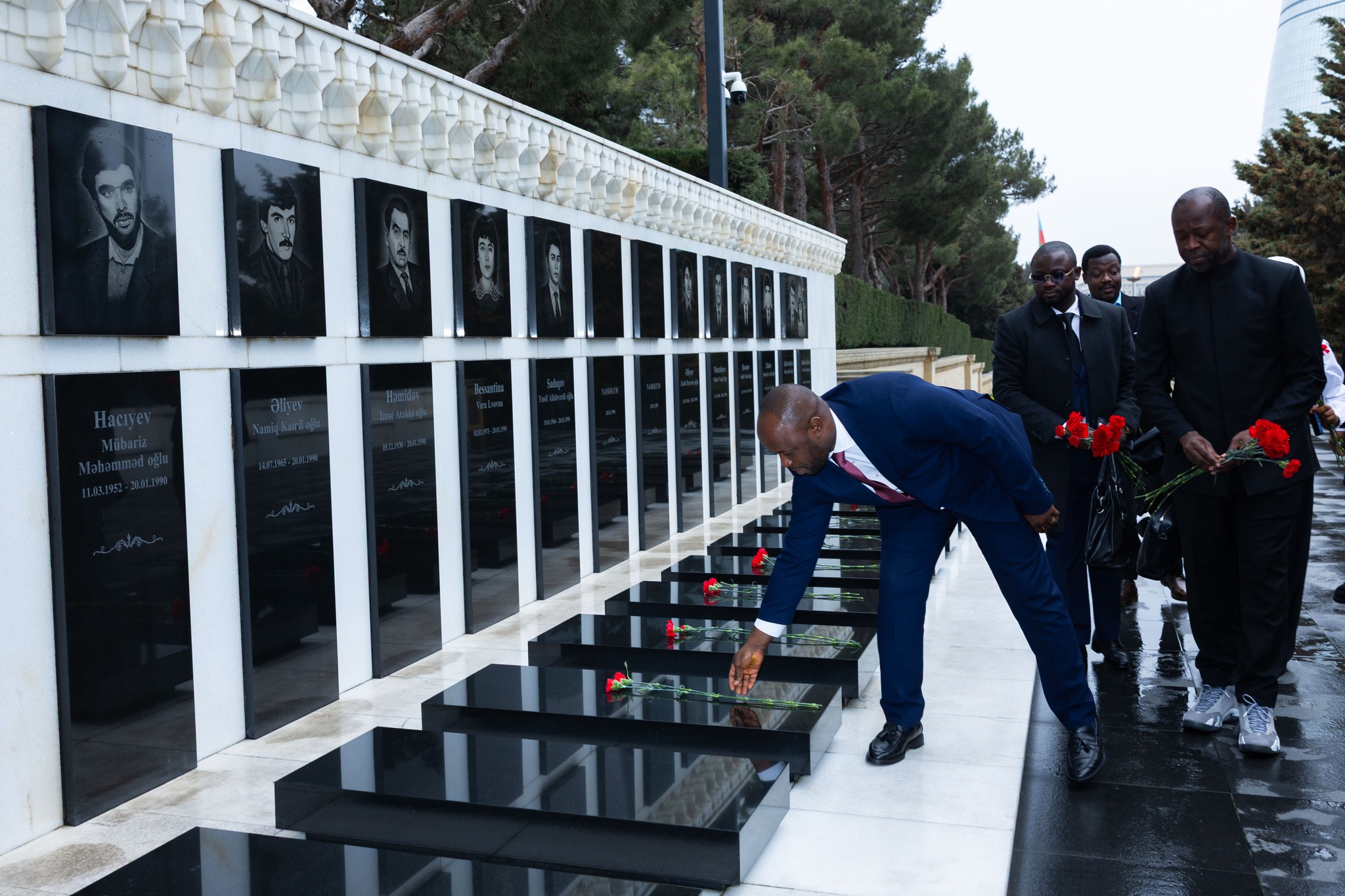 Səfərin ilk günü qonaqlar Şəhidlər xiyabanını ziyarət edib, ölkəmizin azadlığı və suverenliyi uğrunda canlarından keçmiş qəhrəman Vətən övladlarının xatirəsini ehtiramla yad edib, “Əbədi məşəl” abidəsinin önünə əklil qoyublar.