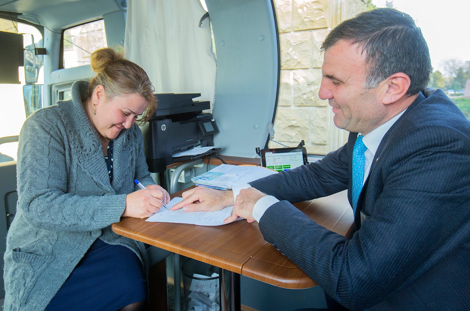 Səyyar şəkildə göstərilən xidmətlər Azərbaycan Respublikasının Ədliyyə Nazirliyi, Daxili İşlər Nazirliyi, Dövlət Sosial Müdafiə Fondu və Əmlak Məsələləri Dövlət Komitəsi tərəfindən təqdim olunur.