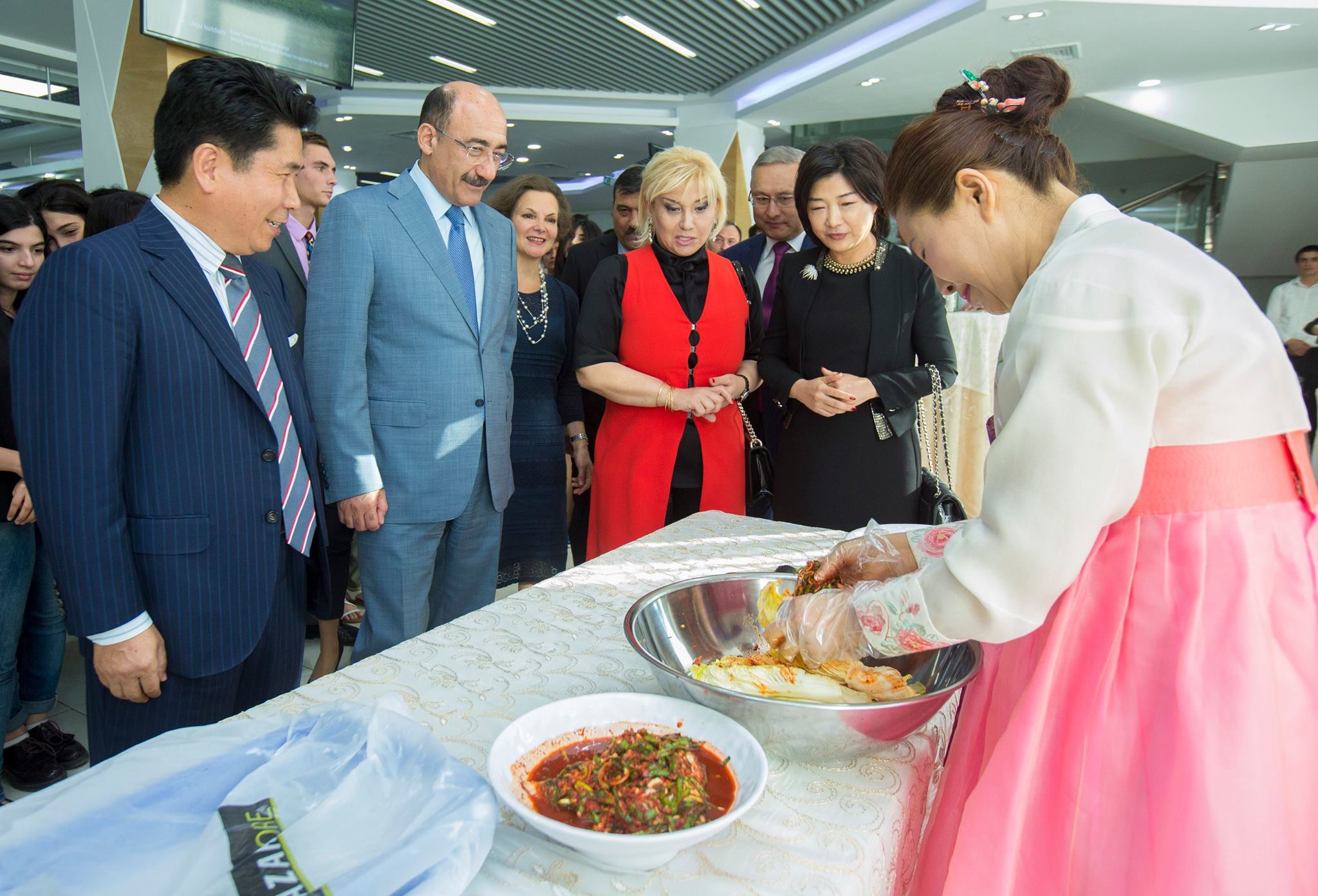 Daha sonra çıxış edən Koreyanın Azərbaycandakı səfiri Kim Çanq Qyu bildirib ki, bu gün nümayiş etdirilən yeməklər Koreya mətbəxinin xüsusi nümunələridir və bu cür tədbirlərin keçirilməsi hər iki xalqın zəngin mətbəx ənənələri ilə tanışlıqla yanaşı, ölkələrarası mədəni əlaqələrin inkişafına da xidmət edir.