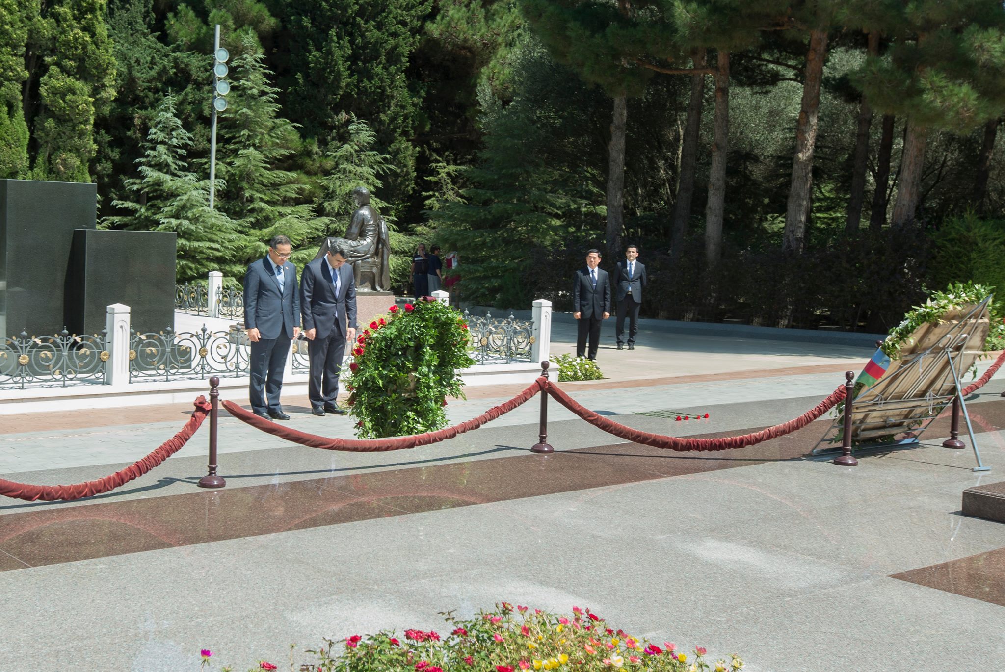 Avqustun 18-də Azərbaycanda səfərdə olan Koreya Respublikasının daxili işlər naziri cənab Hong Yun-Sık və Azərbaycan Respublikasının Prezidenti yanında Vətəndaşlara Xidmət və Sosial İnnovasiyalar üzrə Dövlət Agentliyin sədri İnam Kərimov Fəxri Xiyabana gələrək ümummilli lider Heydər Əliyevin xatirəsini ehtiramla yad edib, məzarı önünə əklil qoyublar.