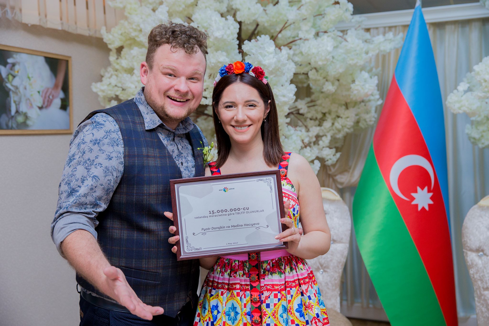 Nikaha daxil olmaq istəyən Dorojkin Pyotr və Hacıyeva Mədinənin 1 saylı Bakı “ASAN xidmət” mərkəzinə müraciəti “ASAN xidmət” mərkəzlərinə olan 15 000 000-cu müraciət kimi qeydə alınıb.