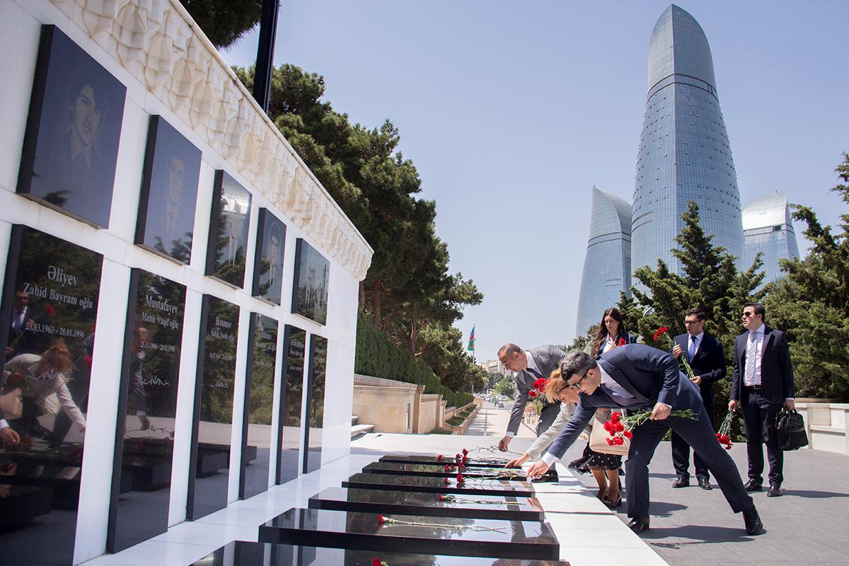 Daha sonra Şəhidlər Xiyabanı da ziyarət edilib. Nazir Suzana Pribiloviç Azərbaycanın müstəqilliyi və ərazi bütövlüyü uğrunda mübarizədə şəhid olan qəhrəman vətən övladlarının xatirəsini yad edib, “Əbədi məşəl” abidəsinin önünə əklil qoyub.