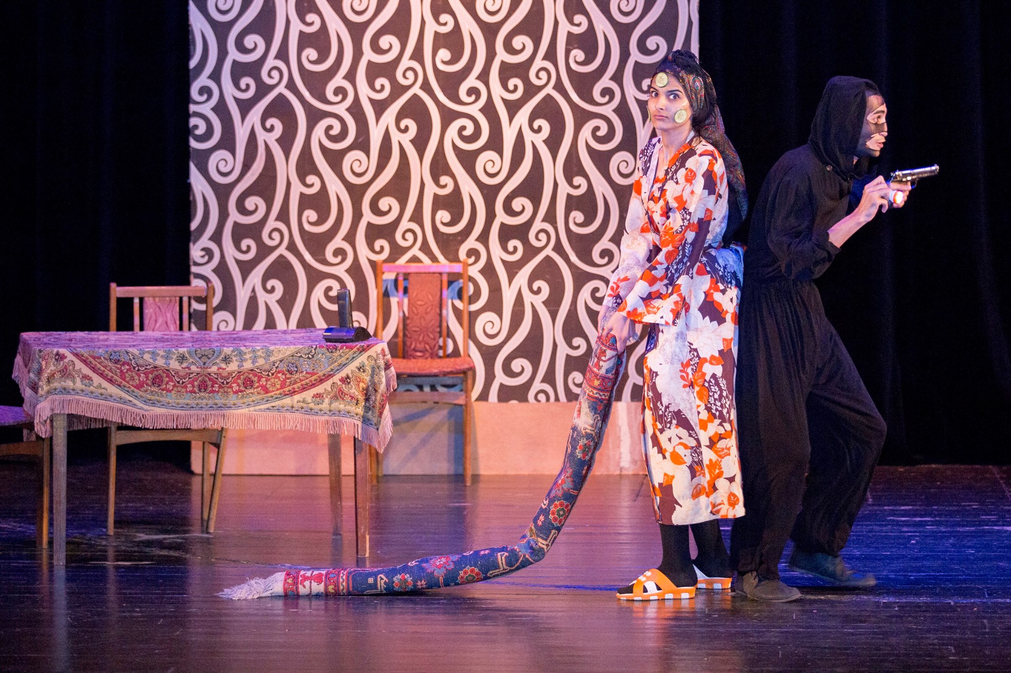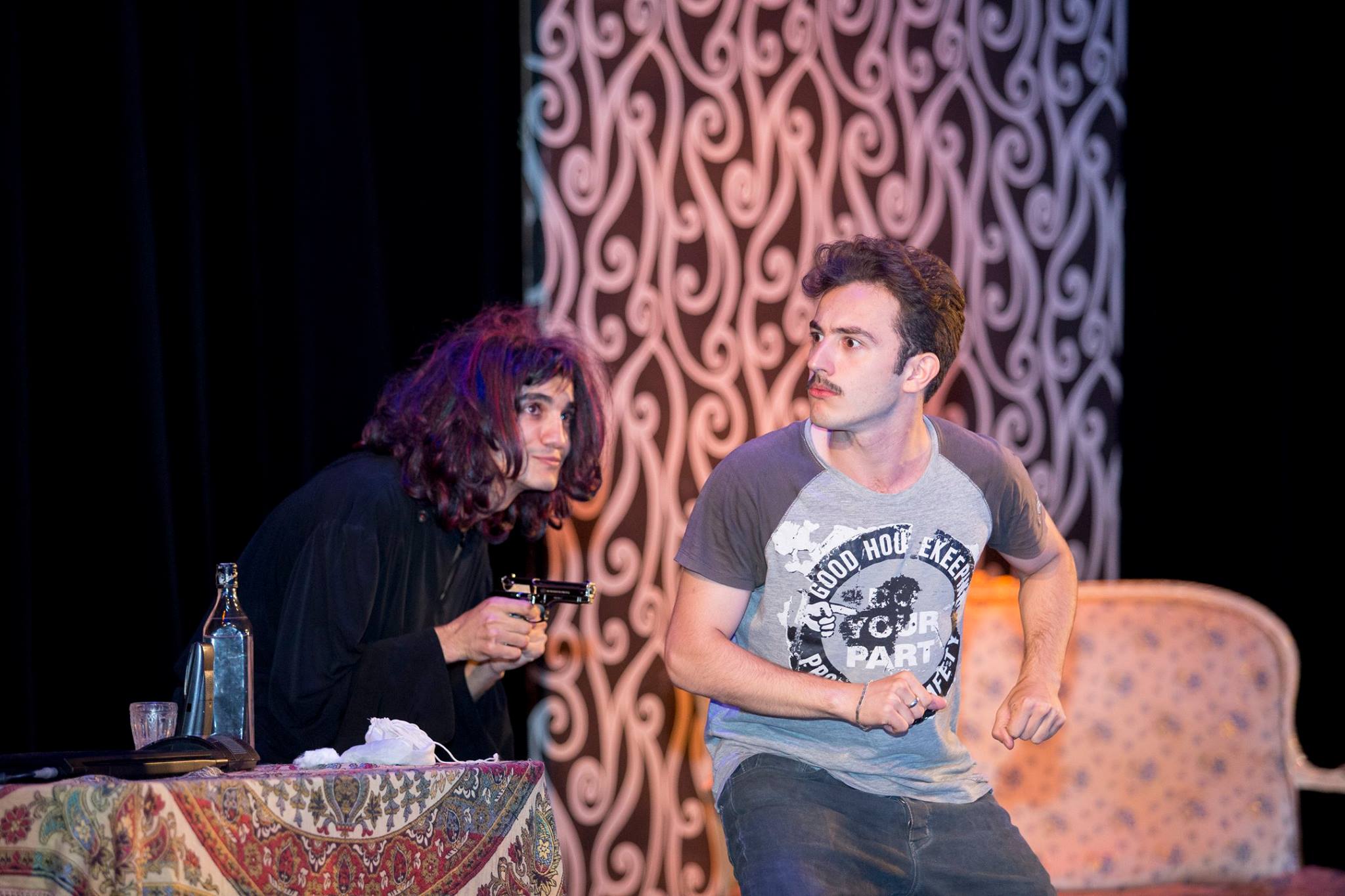 Anar Sadıqovun rejissorluğu ilə hazırlanan tamaşada 6 könüllü rol alıb. Səhnə əsərində rolları Murad Həsənzadə, Bayaz Həsənova, Rauf Namazov, Gültac Yusifova, Orxan Babayev və Nigar Əmrahlı canlandırıblar.