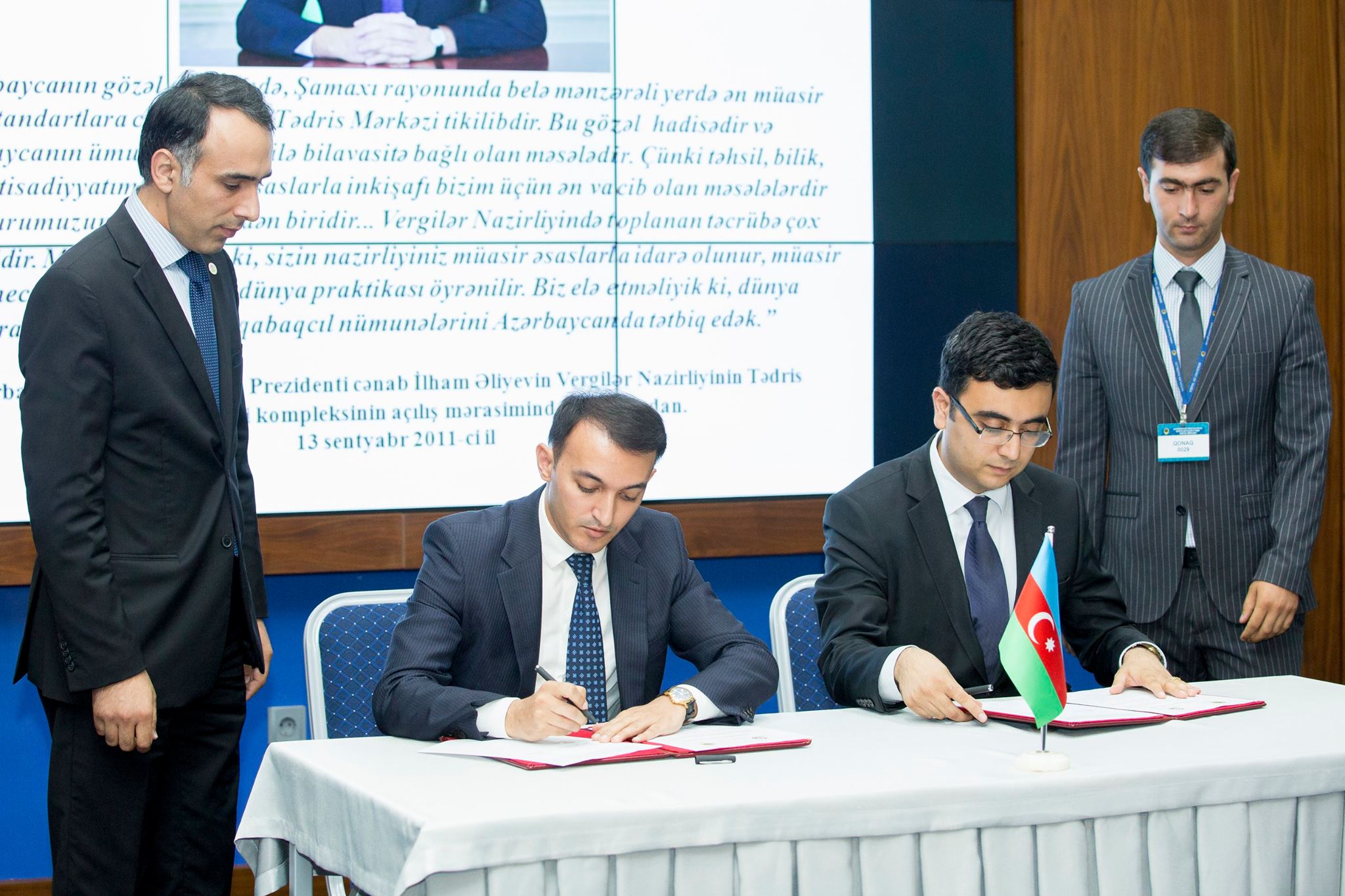 Mərasimin sonunda Vergilər Nazirliyi ilə Azərbaycan Respublikasının Prezidenti yanında Vətəndaşlara Xidmət və Sosial İnnovasiyalar üzrə Dövlət Agentliyi arasında gələcək əməkdaşlığa dair Memorandum imzalanıb. Memorandumu Vergilər Nazirliyinin Tədris Mərkəzinin rəisi Əli Həsənov, Azərbaycan Respublikasının Prezidenti yanında Vətəndaşlara Xidmət və Sosial İnnovasiyalar üzrə Dövlət Agentliyinin sədr müavini Ülvi Mehdiyev imzalayıblar.