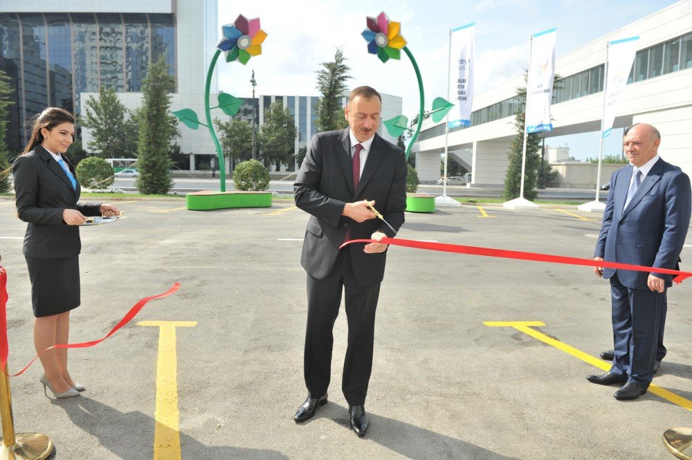 Azərbaycan Respublikasının Prezidenti İlham Əliyev Bakı şəhəri, Nizami rayonu, Heydər Əliyev prospekti, 115 ünvanında yerləşən mərkəzin rəmzi açılışını bildirən lenti kəsdi.