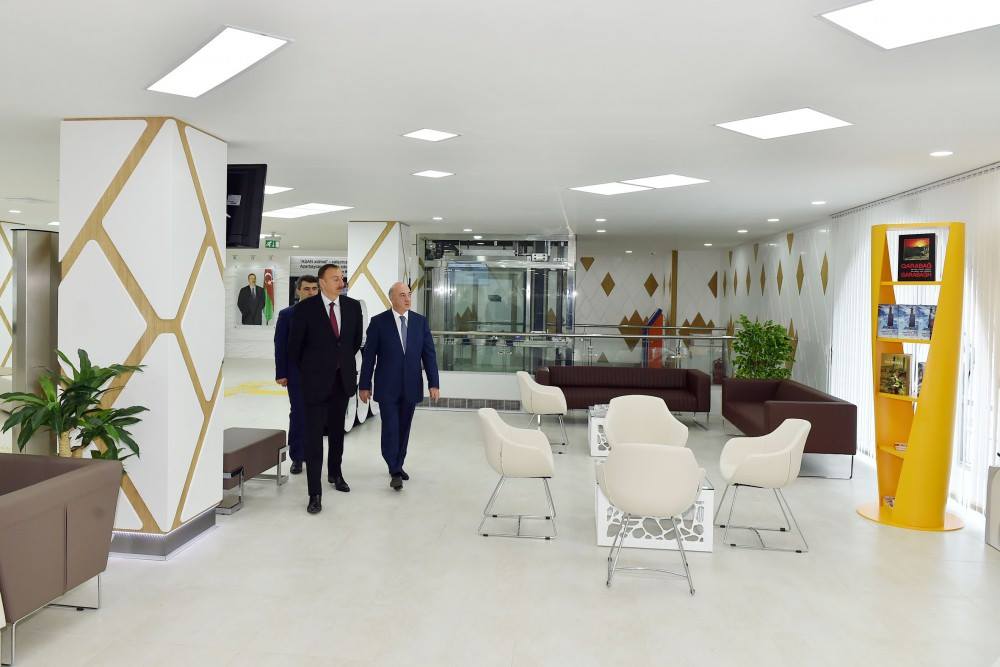 Prezident İlham Əliyev mərkəzin birinci mərtəbəsində yeni layihələrə baxdı.